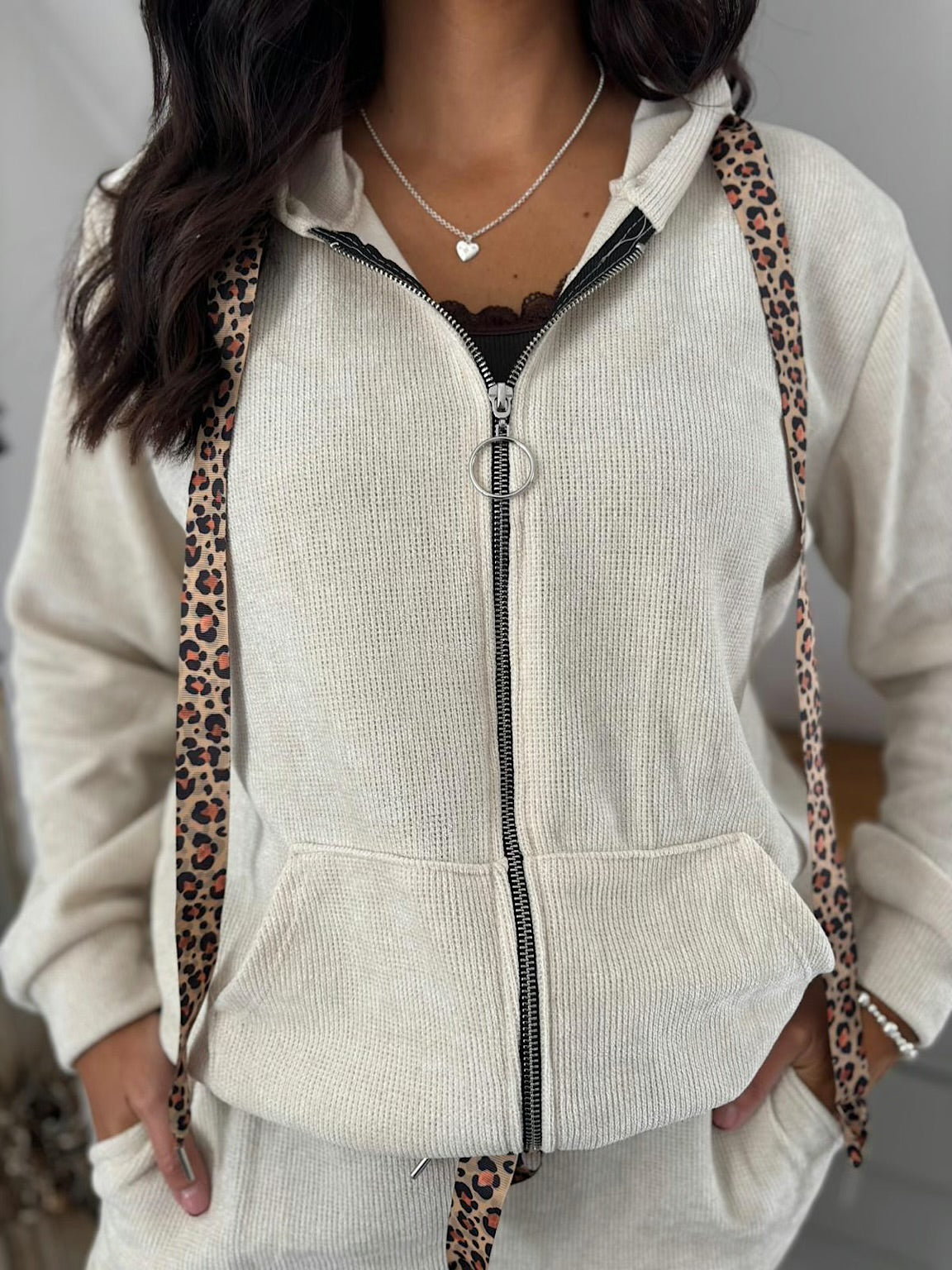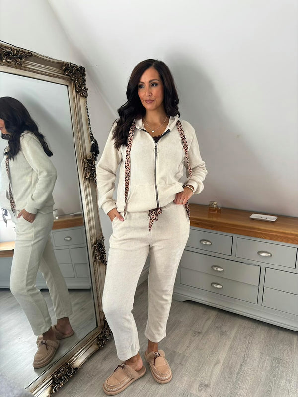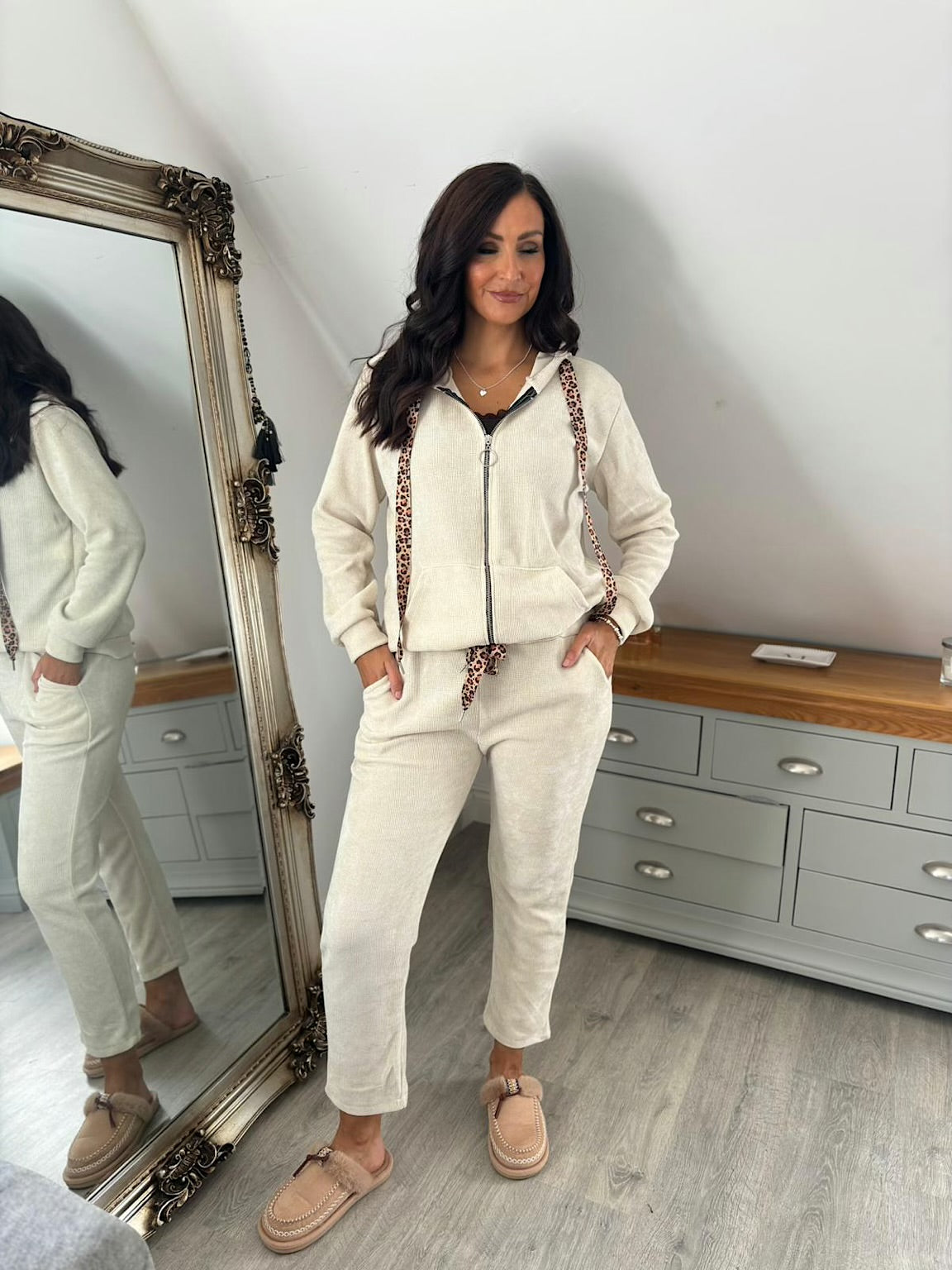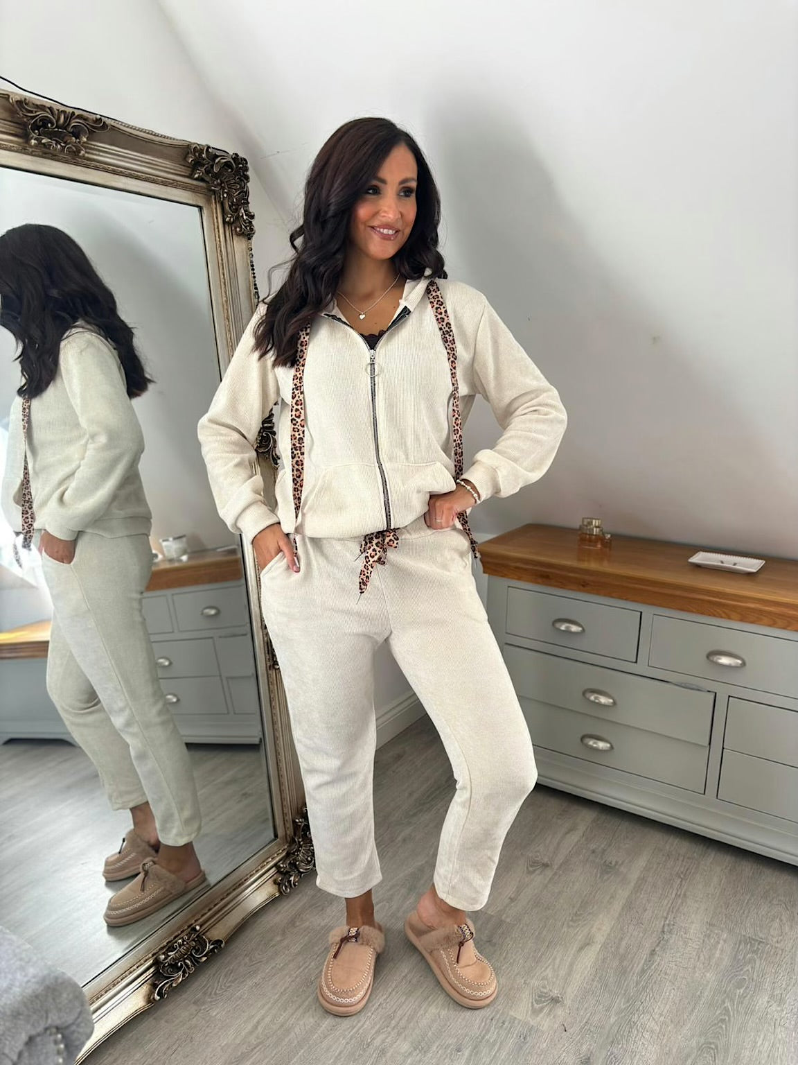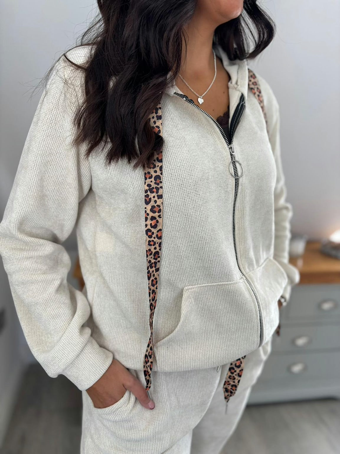 Embrace effortless style with the Textured Tracksuit Set Amber, featuring a luxuriously soft fabric and subtle leopard tie detailing. This tracksuit combines comfort with refined design, perfect for those who appreciate understated elegance in casual wear.