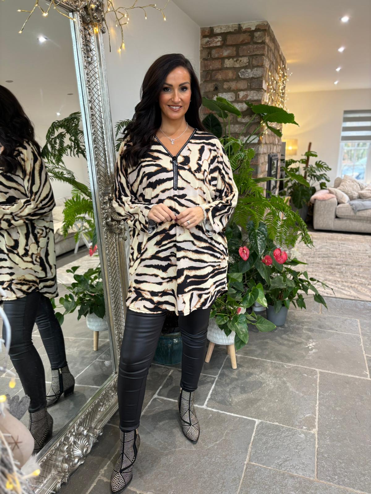 Stone Tiger Print Longline Zip Top Cassie