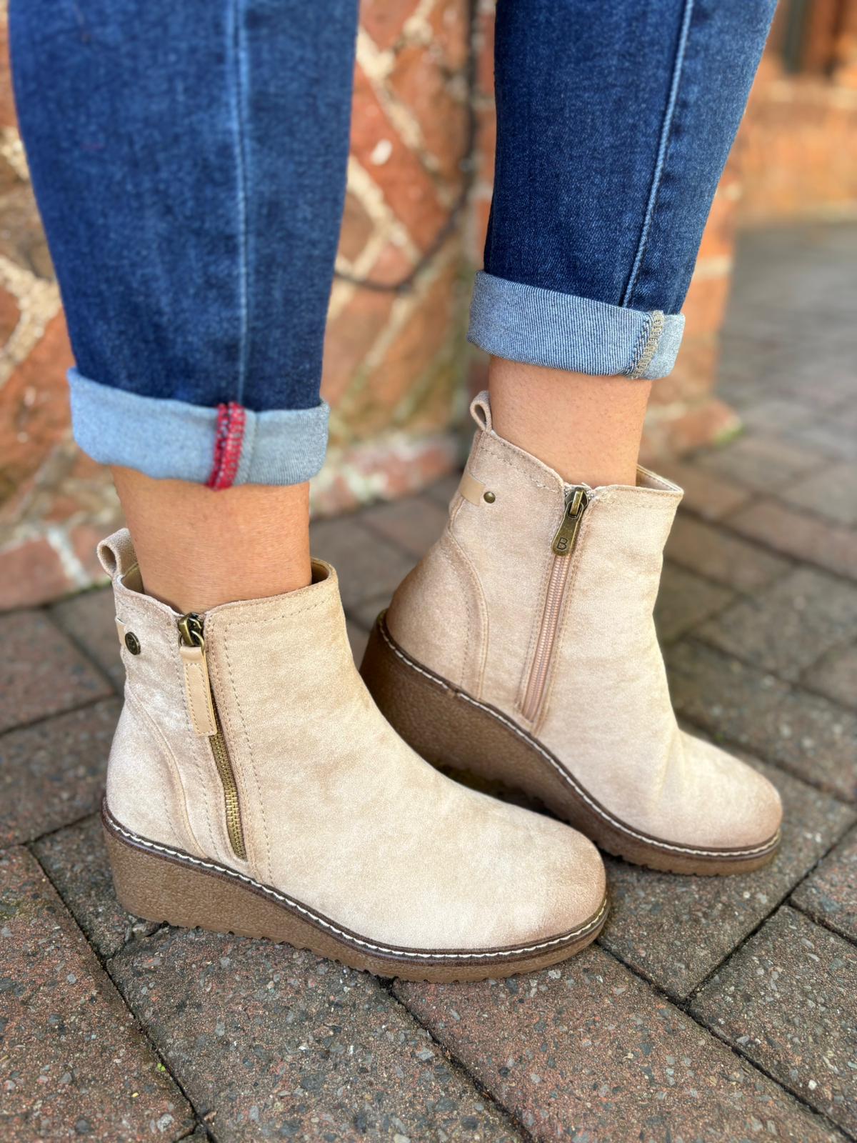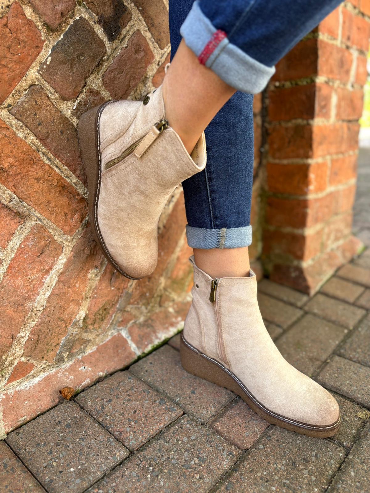These Zip Wedge Boots combine sleek design with practical comfort. Featuring a convenient side zip for easy wear and a wedge heel that offers subtle elevation without compromising stability, they are ideal for all-day use. Crafted to provide both style and support, these boots are a versatile addition to any wardrobe.
