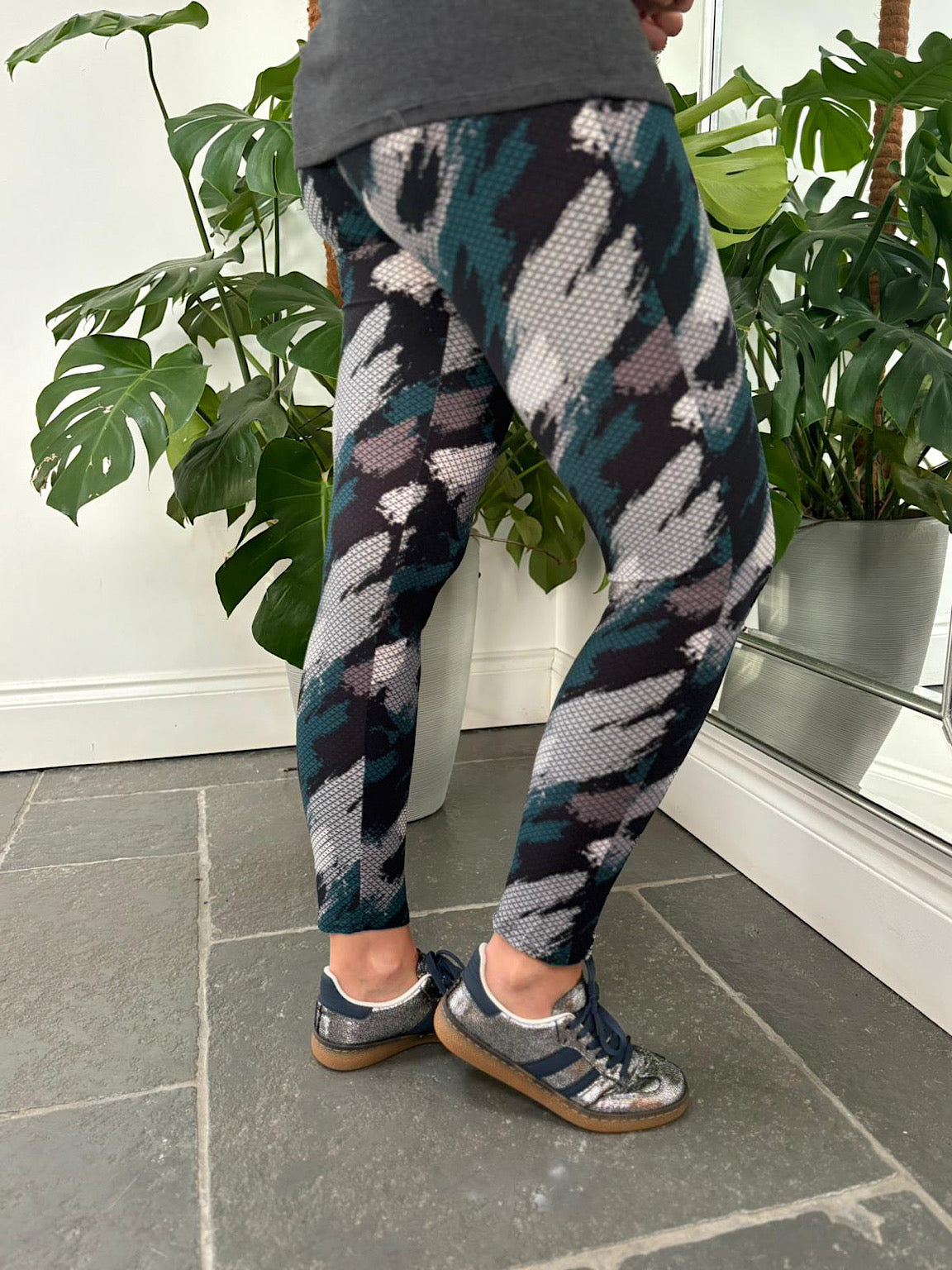 Embrace comfort and style with these beautifully patterned leggings, featuring a mixed print design that blends warm chocolate tones with calming stone and teal accents. The soft fabric moves with you throughout your day, offering gentle support whether you're relaxing at home or stepping out.