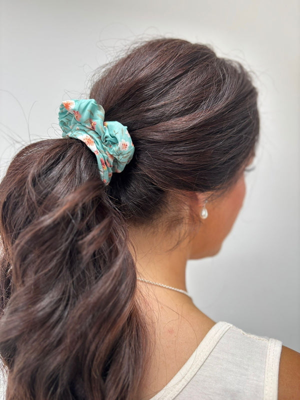 Teal Floral Scrunchie
