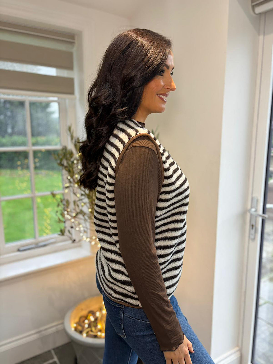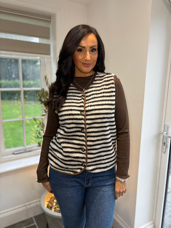 Wrap yourself in pure comfort with this charming striped fleece gilet. Crafted from soft, sumptuous fleece, it's the ultimate layering companion for those moments when you need an extra hug of warmth without the bulk. The classic stripe pattern adds a touch of playful style, while the convenient button fastening makes it effortless to slip on and off. Perfect for cosy afternoons at home or casual outings, this gilet delivers that snug, toasty feeling you'll want to reach for again and again.