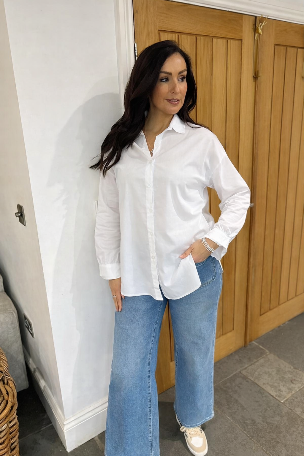 A timeless wardrobe staple, the White Cotton Shirt Nadine delivers everyday comfort with its crisp, breathable cotton fabric. Perfect for layering or wearing solo, this essential piece transitions effortlessly from casual to smart-casual styling. The clean, classic design ensures it pairs beautifully with virtually everything in your closet, making it an indispensable foundation for any season.