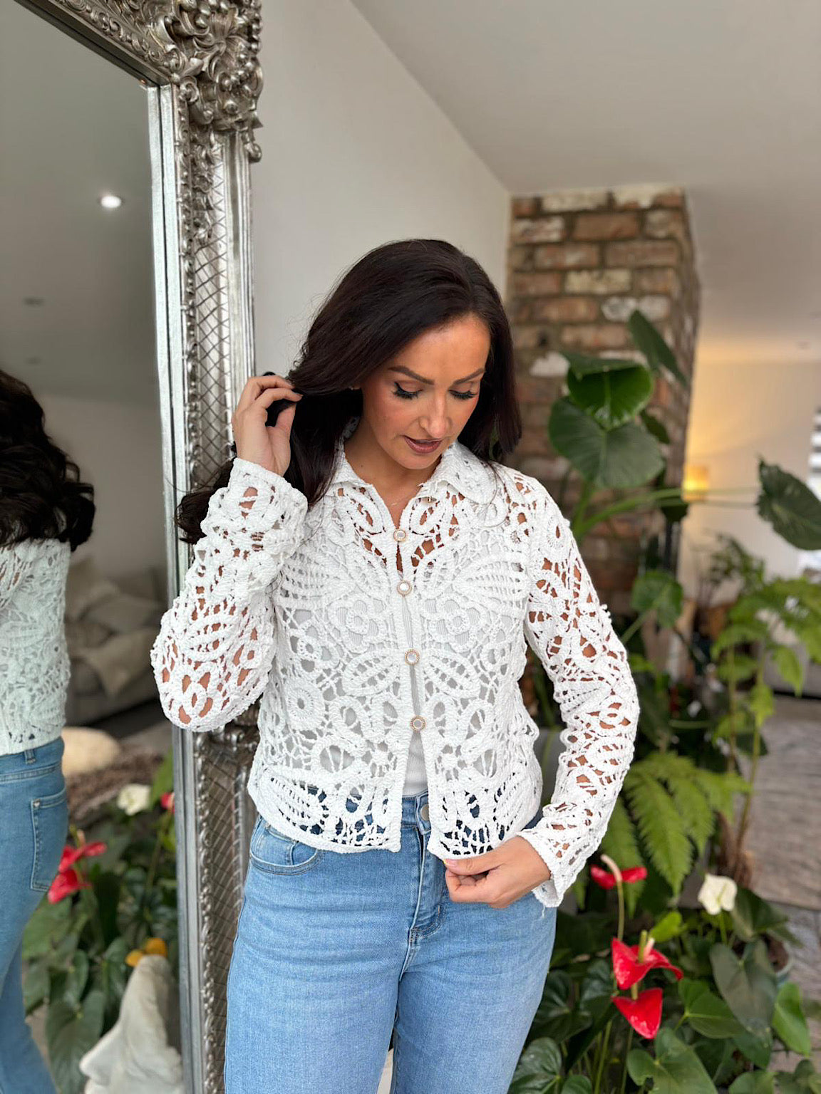 White Floral Crochet Jacket Noa
