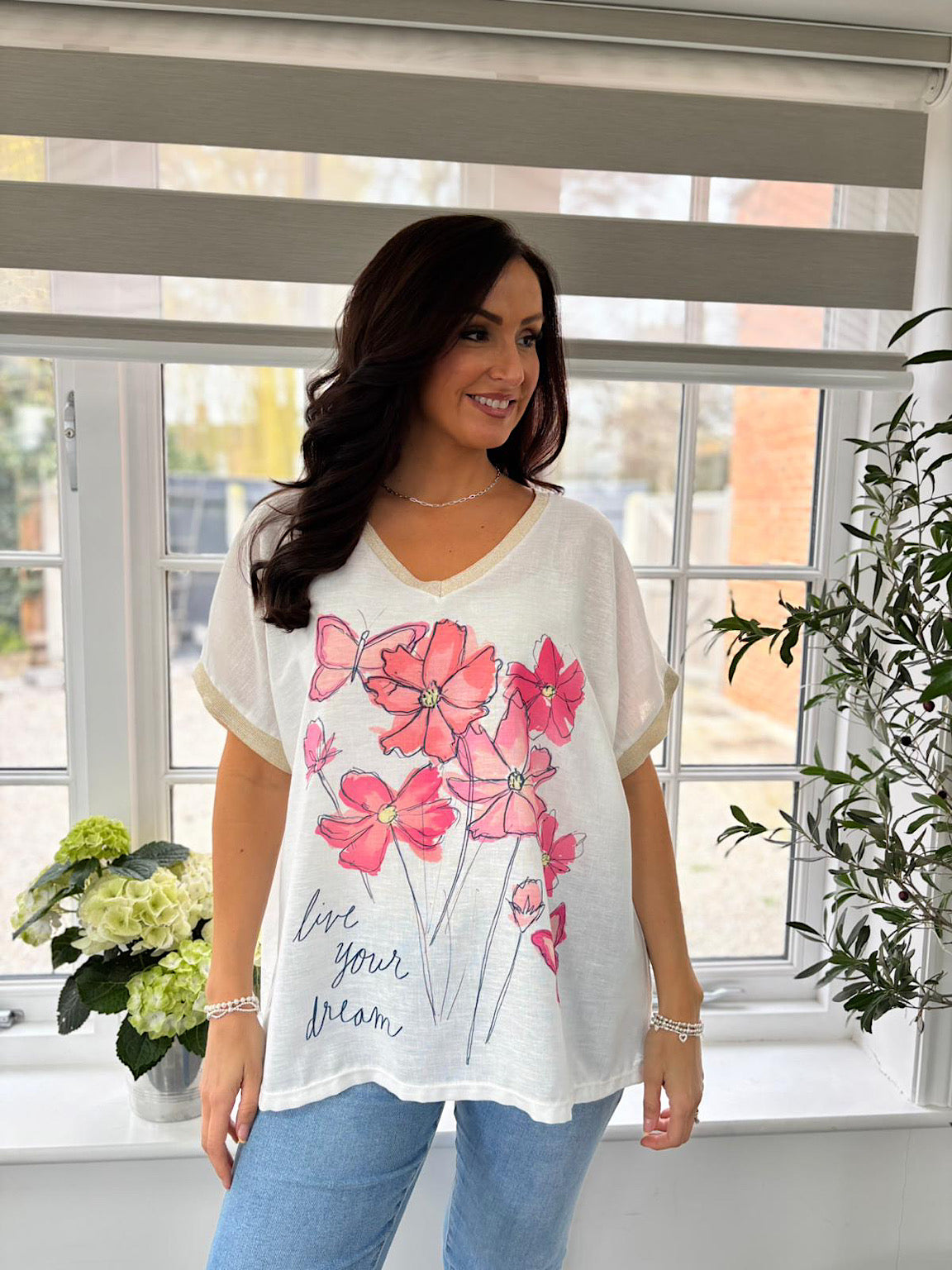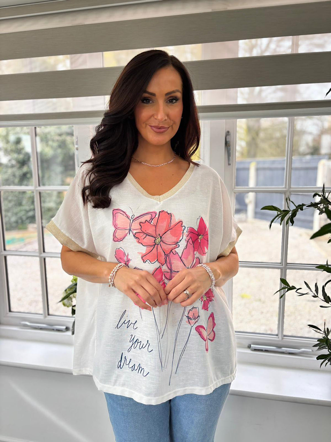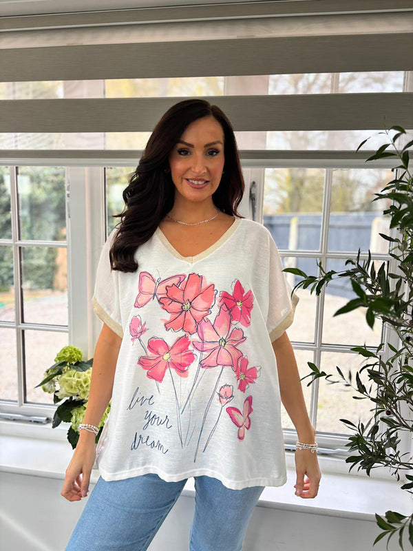 White Floral V Neck Tee Yara