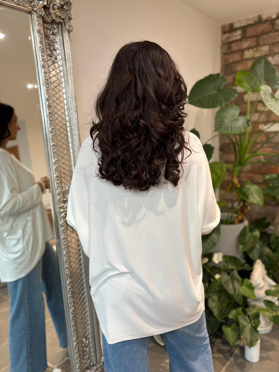 Embrace effortless comfort with this relaxed knit featuring delicate foil hearts and shimmering flecks throughout. The soft fabric feels wonderful against your skin, while plain sleeves keep the focus on the eye-catching detail. Perfect for adding a touch of sparkle to your everyday wardrobe without compromising on cosiness.