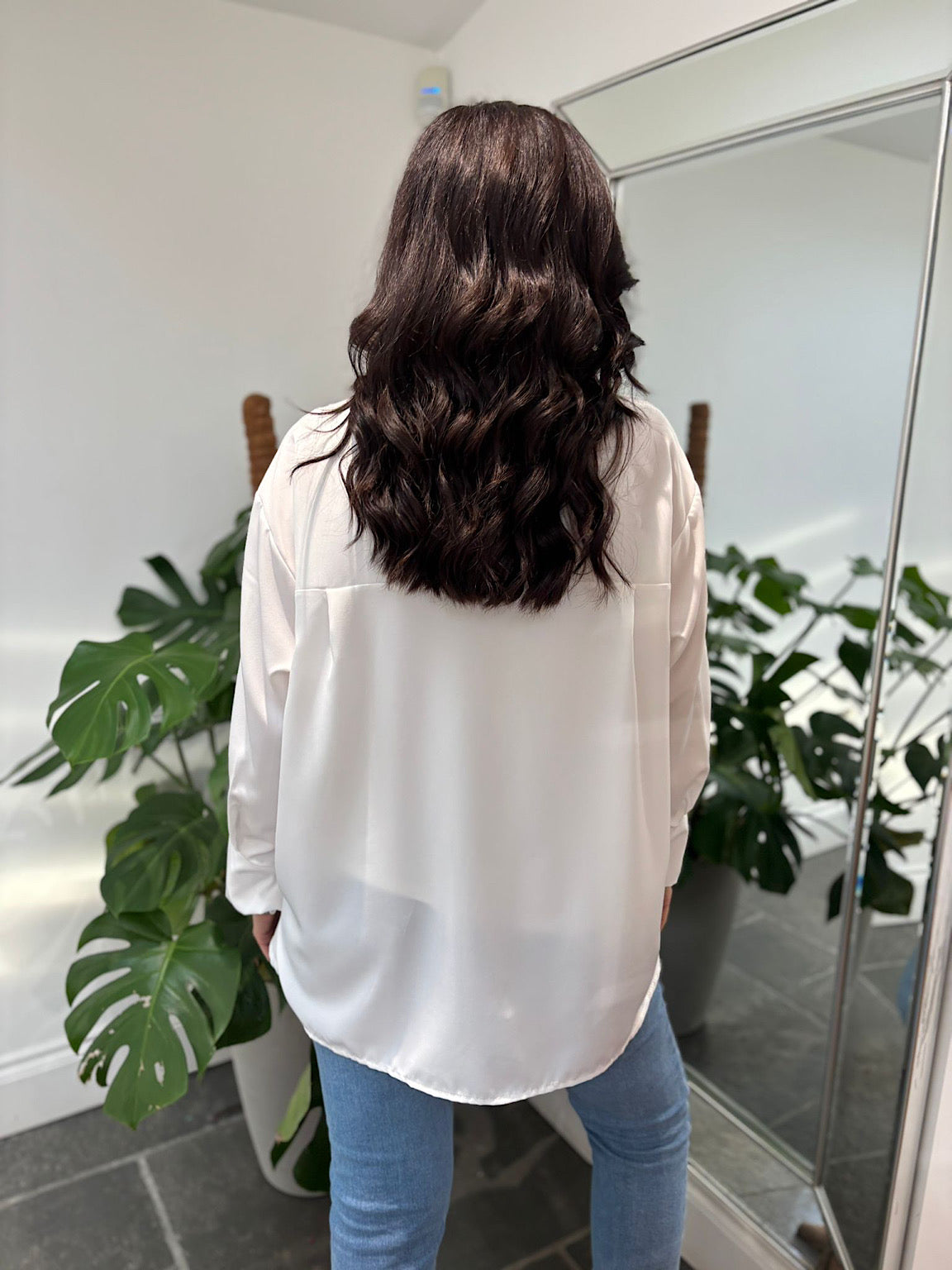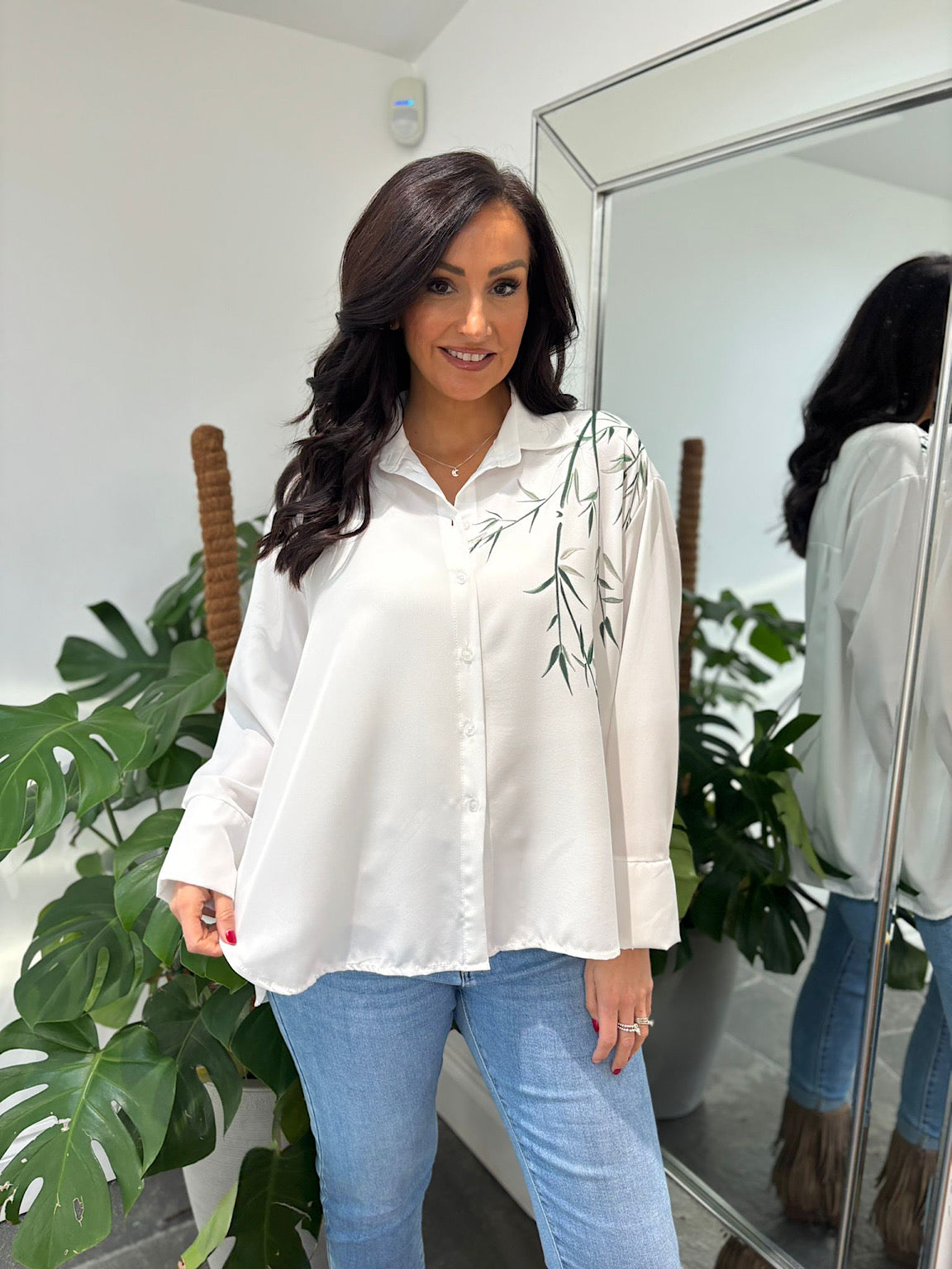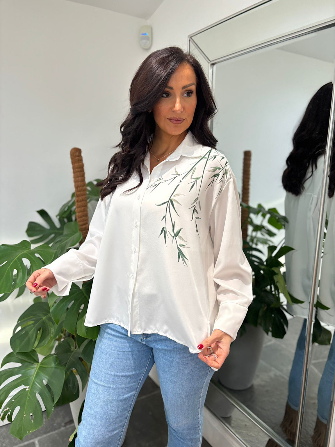Introducing the White Printed Leaf Blouse Tyra—a versatile piece that effortlessly elevates your everyday wardrobe. Featuring a striking printed leaf design on one side, this blouse showcases a contemporary slight high-low hemline that adds subtle movement and visual interest. Crafted from lightweight, breathable material, it's designed to keep you comfortable throughout the day while maintaining its shape. Perfect for layering or wearing solo, this blouse transitions seamlessly from casual outings to more polished occasions. Embrace understated elegance with a piece that celebrates thoughtful design and quality craftsmanship.