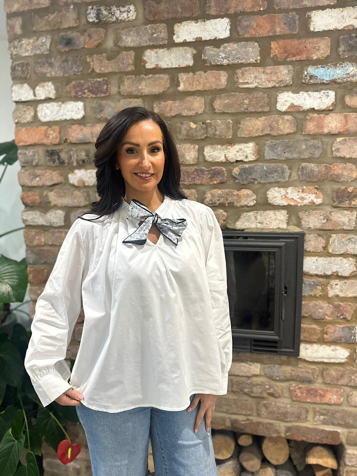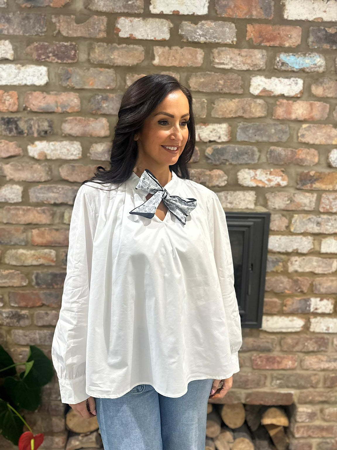 Elevate your everyday wardrobe with the Jackie blouse, crafted from crisp cotton that feels as good as it looks. The signature satin-style neck scarf adds a touch of elegance and sophistication to your neckline, while remaining completely removeable so you can style it your way. Whether you wear it tied for a polished finish or detached for a clean, minimalist look, this versatile piece adapts to your mood and occasion. Perfect for work, weekend outings, or anywhere you want to feel confident and put-together.
