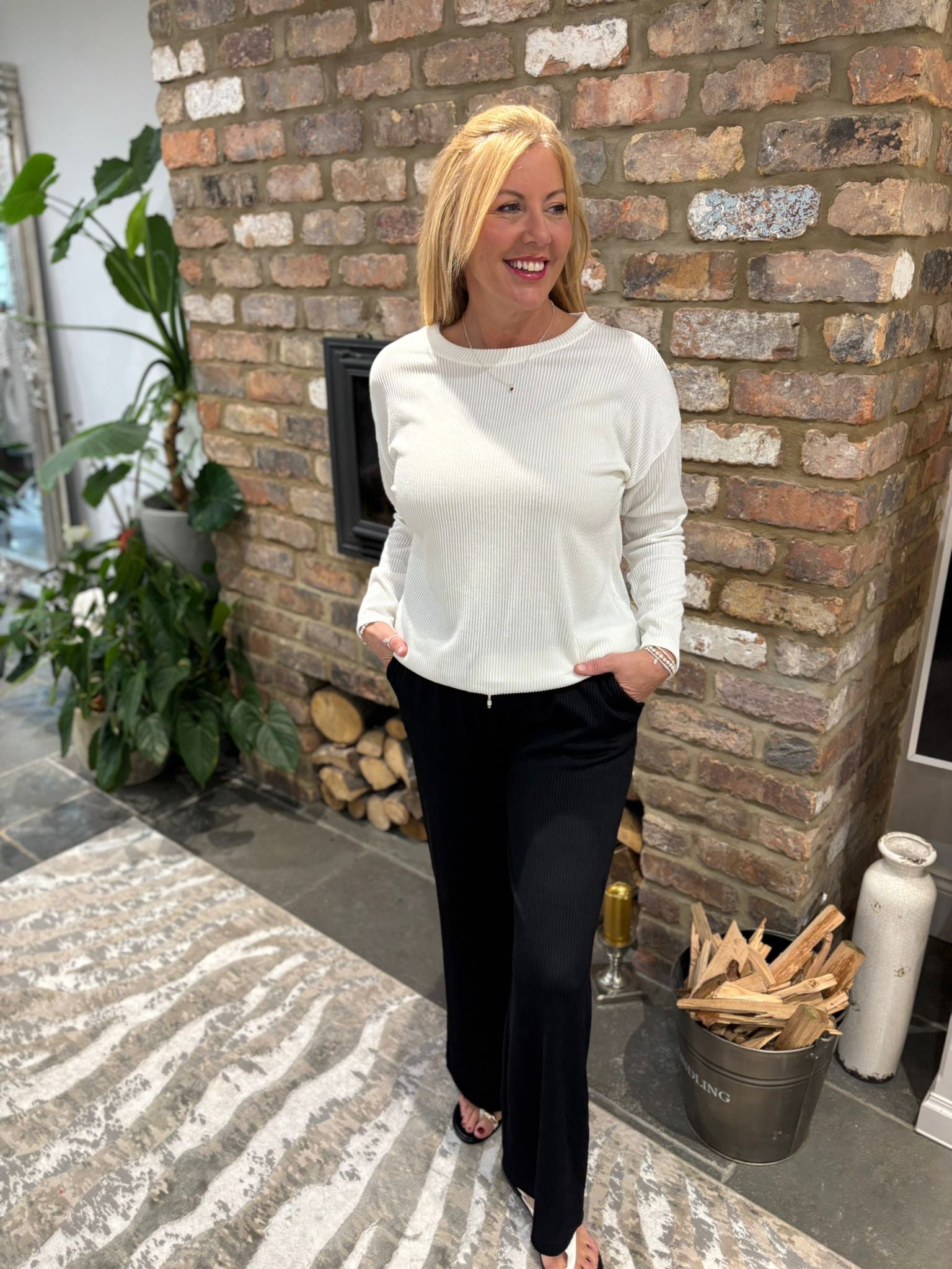 Embrace comfort with this textured rib sweatshirt, designed to keep you cosy and stylish. The classic round neck offers timeless appeal, while the ribbed fabric provides a soft, structured feel against your skin. An adjustable drawstring hem lets you customise the fit to suit your mood, whether you prefer a relaxed drape or a more tailored silhouette. Perfect for layering or wearing solo, this versatile piece transitions effortlessly from casual days to relaxed evenings.