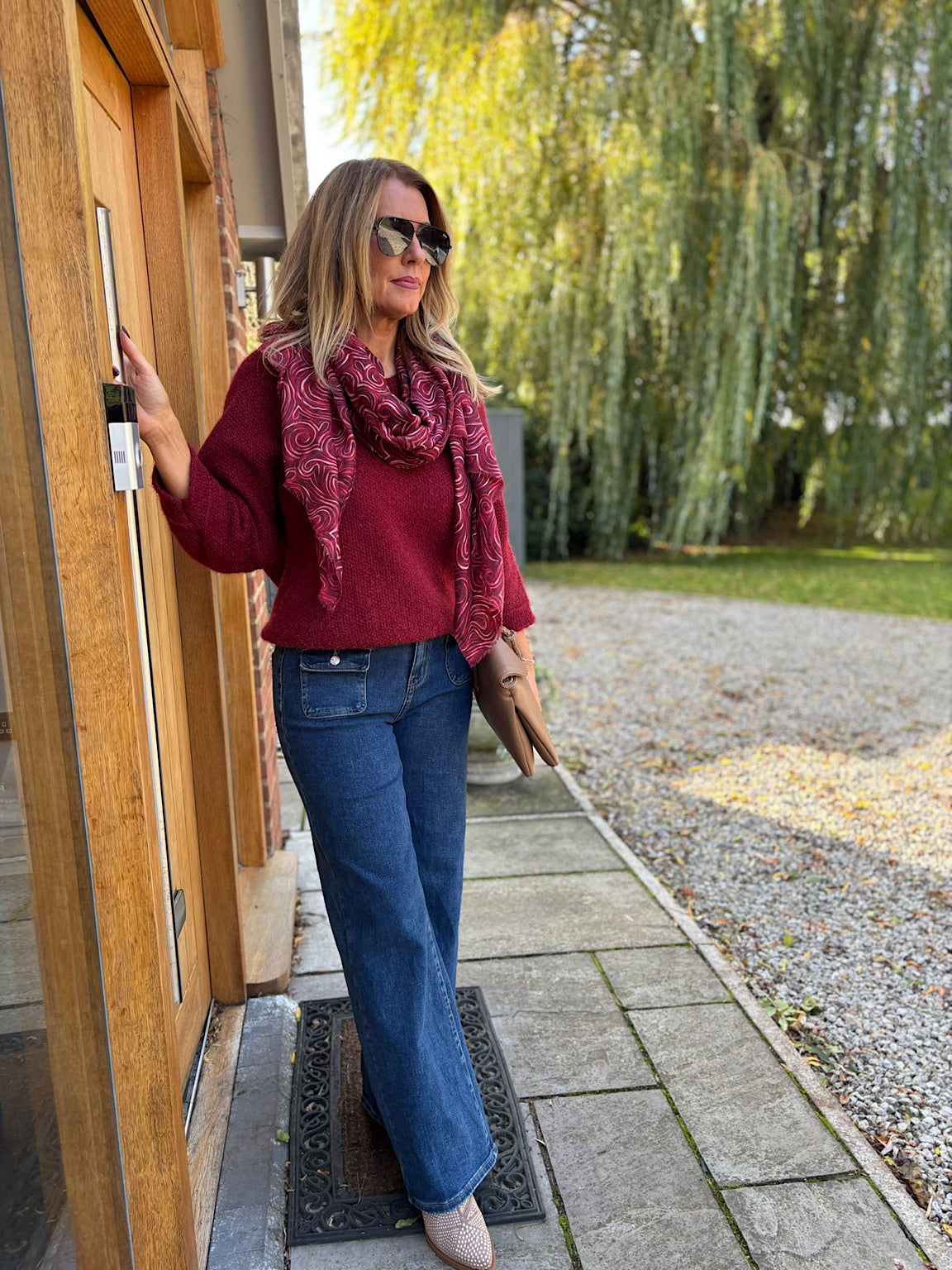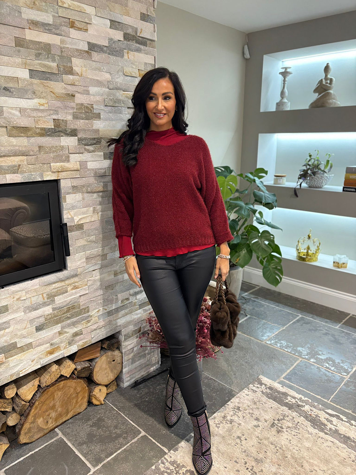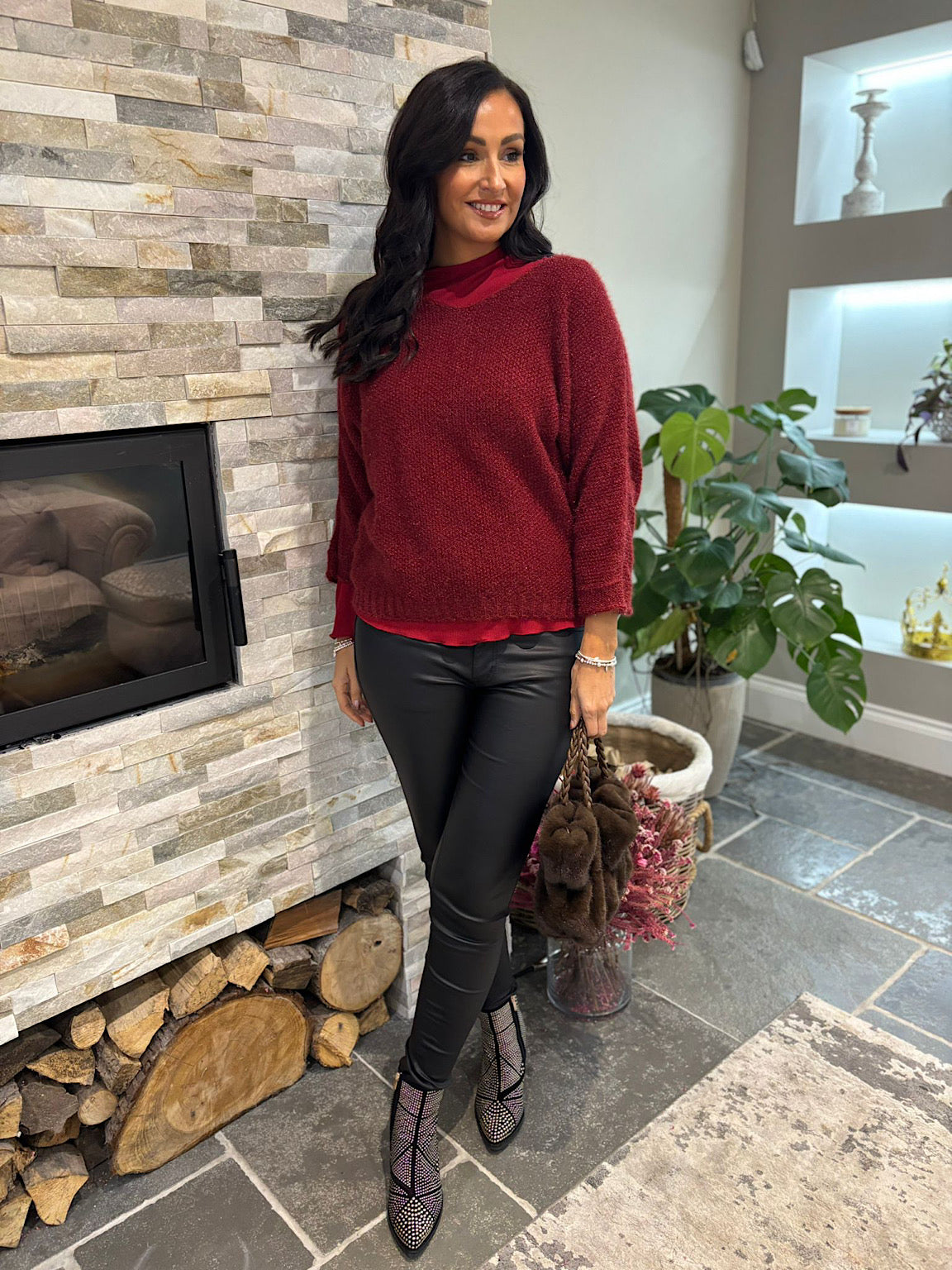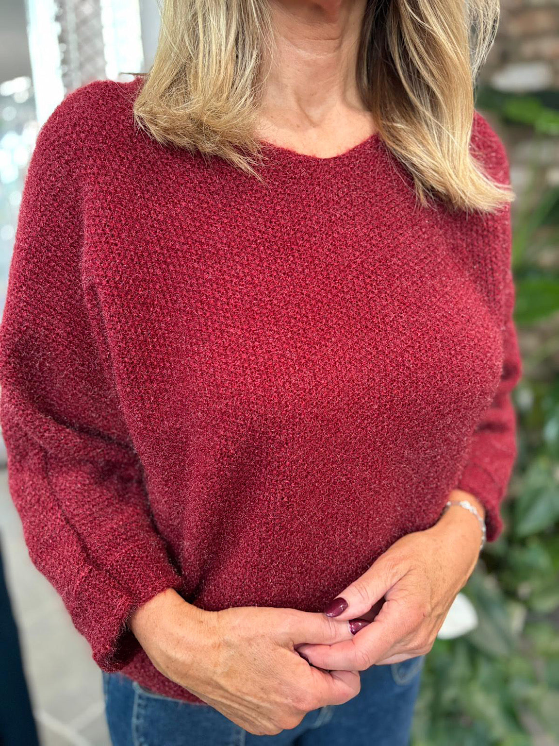 The Back Detail Knit Top Billie features elegant batwing sleeves and delicate button detailing along the back, adding a sophisticated touch to your outfit. Crafted from subtly shimmering fabric, this top brings a soft glow to your look, perfect for both day and evening wear. Comfortable and stylish, it supports your confident, graceful style effortlessly.