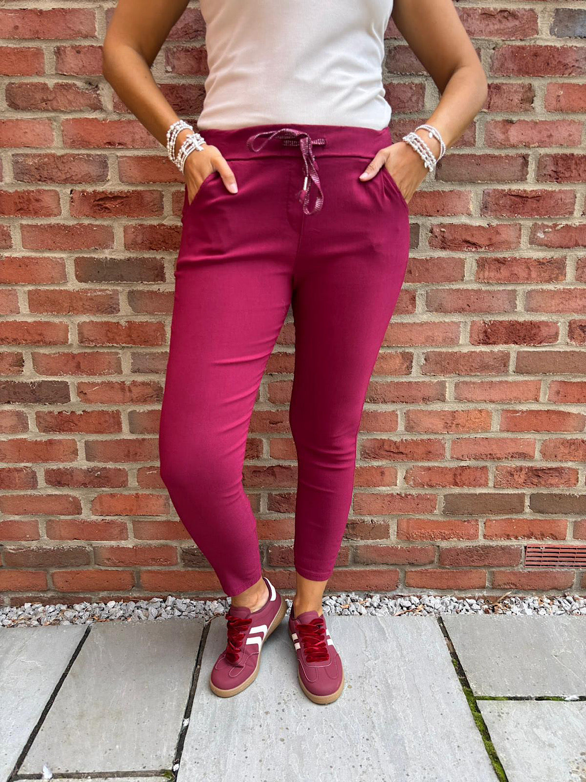 These Magic Trousers are perfect for staycations, holidays or even just going out walking with the dog. Available in a variety of colours, they are super stretchy, comfortable and have a lurex detail drawstring. If you would like a looser boyfriend style fit then we recommend going for the size up.