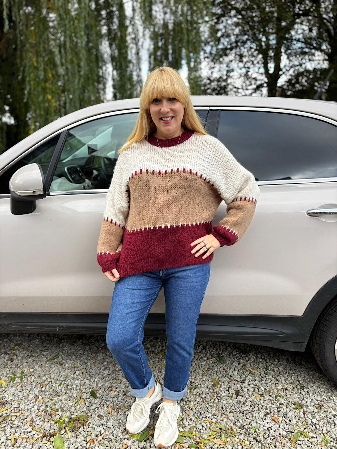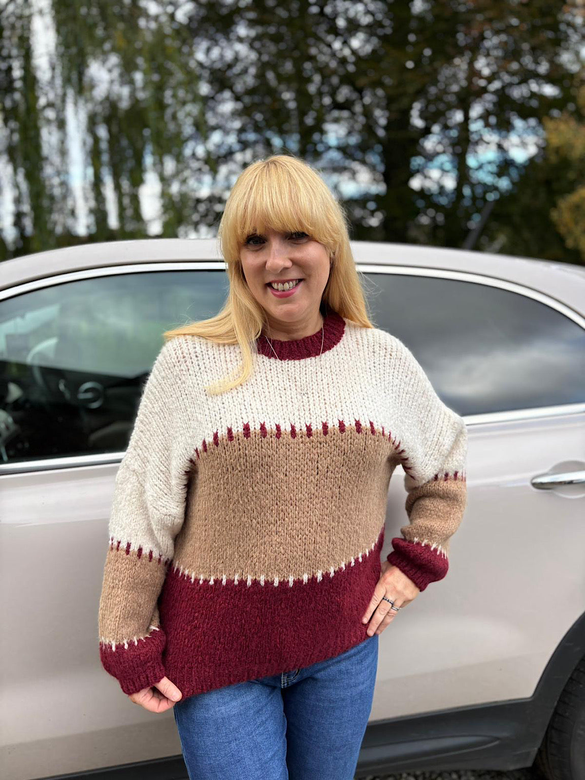 The Block Stitch Jumper Edie is crafted from a chunky knit that provides comforting warmth. Featuring a distinctive block stripe design with detailed stitching, this jumper combines style and cosiness effortlessly. Ideal for layering or wearing on its own, it’s a reliable choice to keep you snug throughout the colder seasons.