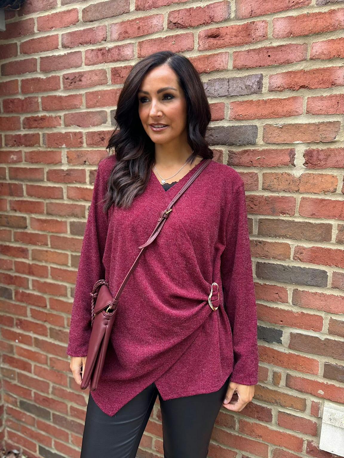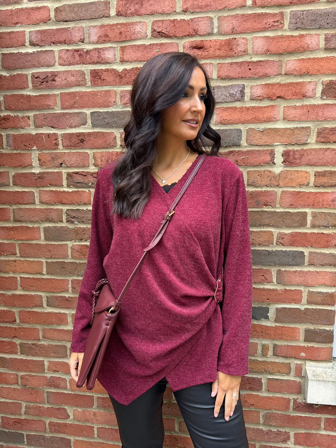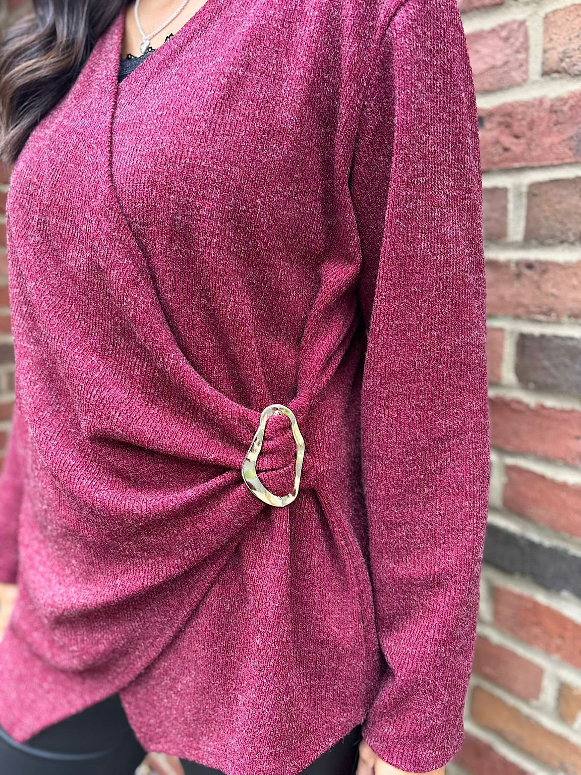 Elevate your wardrobe with the Brooch Cross Over Knit Hattie. Crafted from a soft knit fabric, this piece features an elegant cross-over design beautifully accented by a decorative brooch, adding a refined touch to your look. Ideal for sophisticated layering, it combines comfort with understated style.