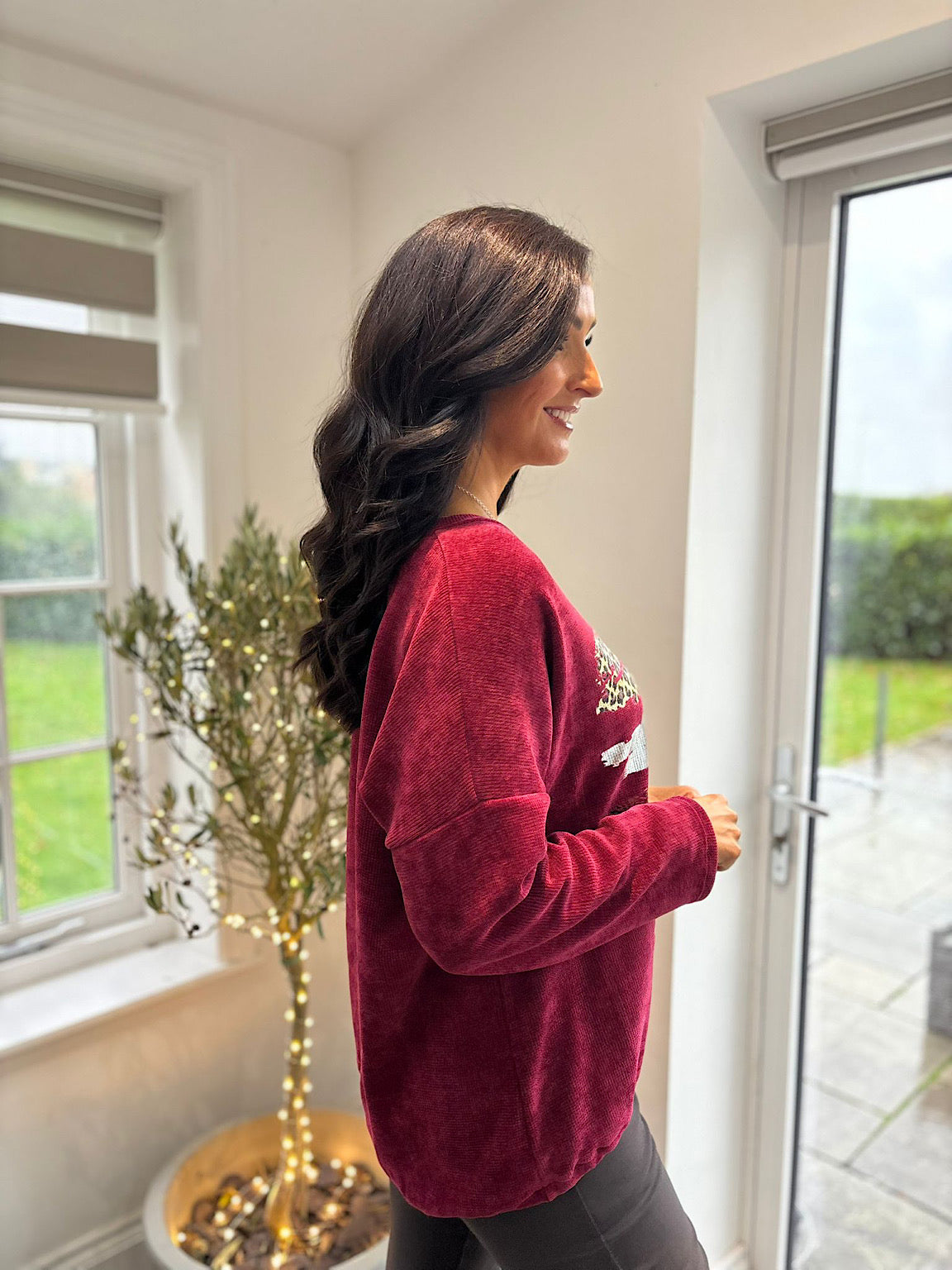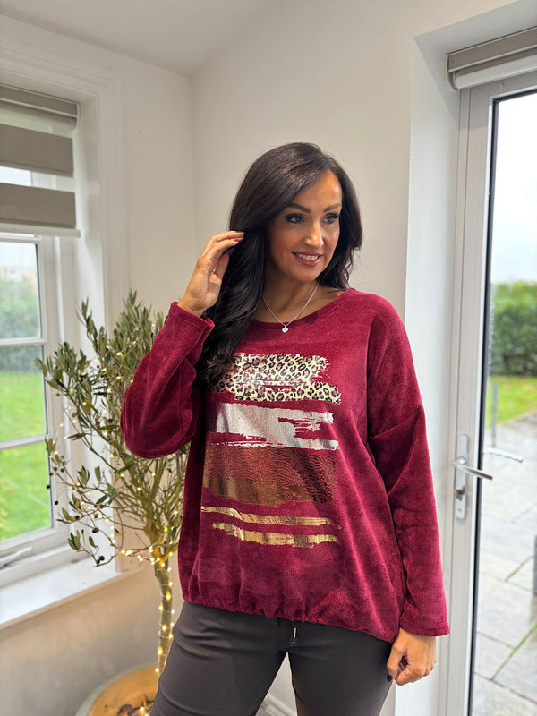 Wine Chenille Brushstroke Sweatshirt Donna