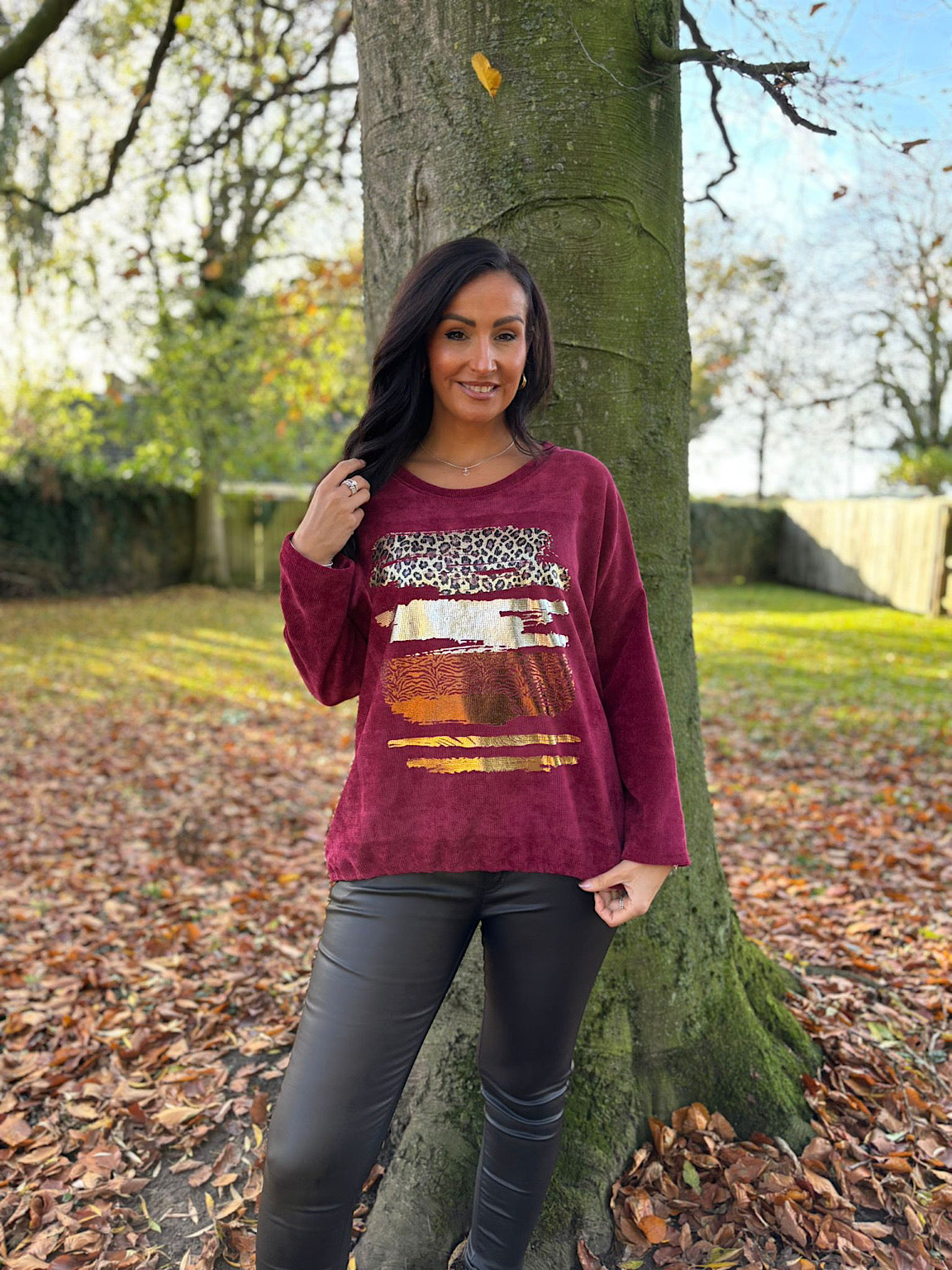 Indulge in the plush softness of this Chenille Brushstroke Sweatshirt, designed for all-day comfort. The luxurious chenille fabric feels wonderful against your skin, while striking metallic foil accents bring a leopard print pattern to life. An adjustable drawstring bottom lets you customize the fit to suit your style. A versatile piece that combines tactile appeal with contemporary flair.