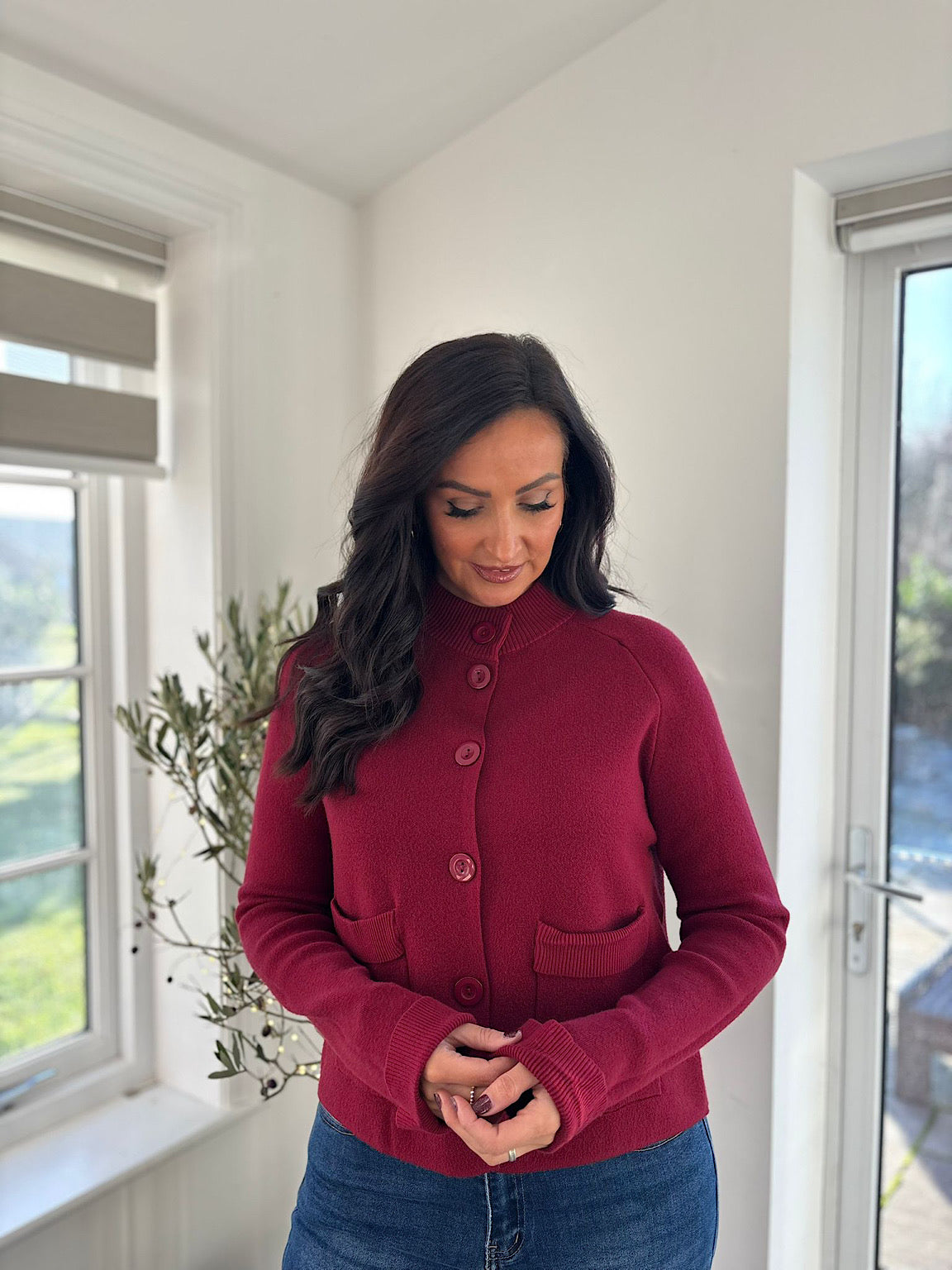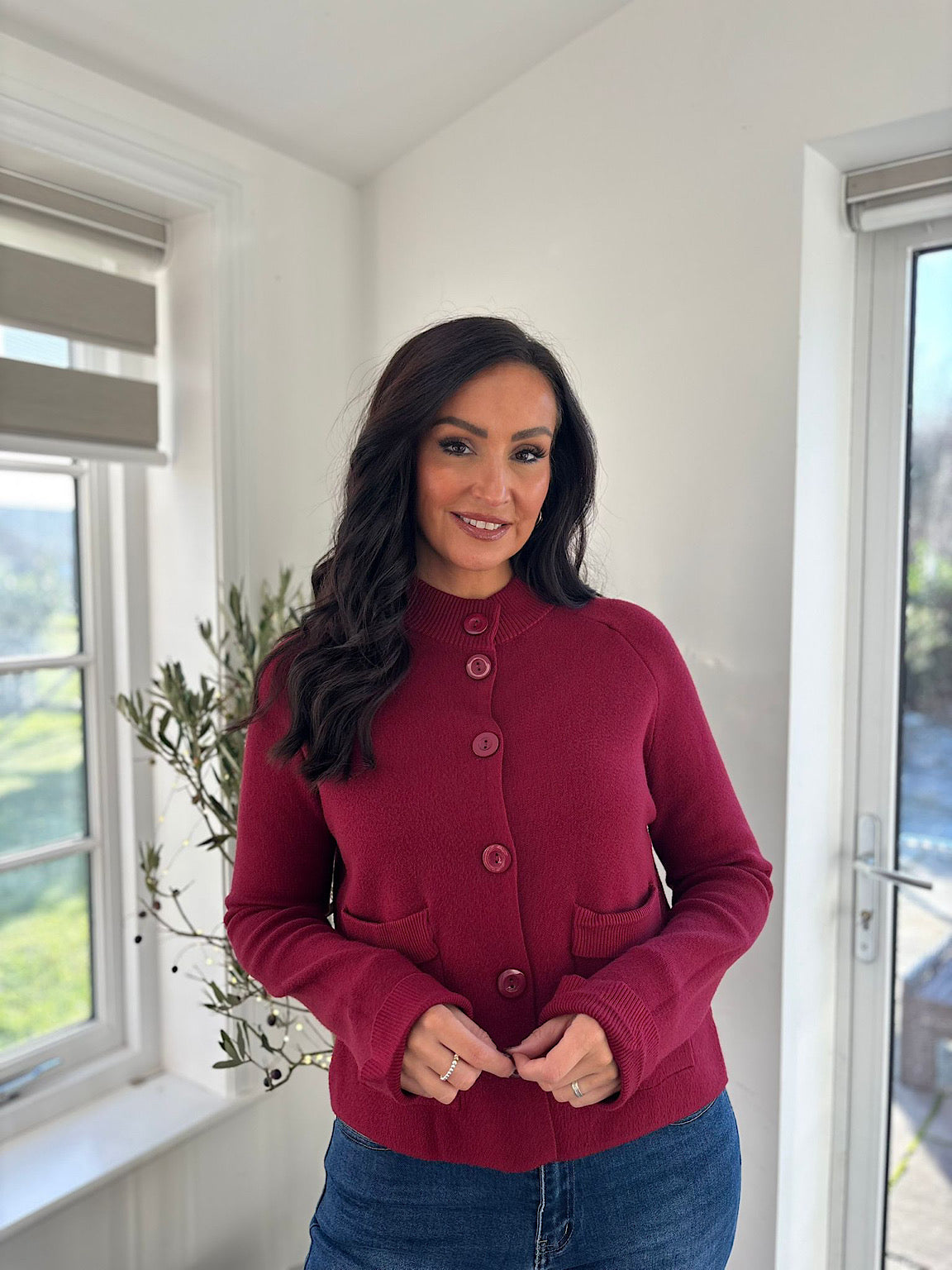 Wine Crew Neck Pocket Cardi Janet