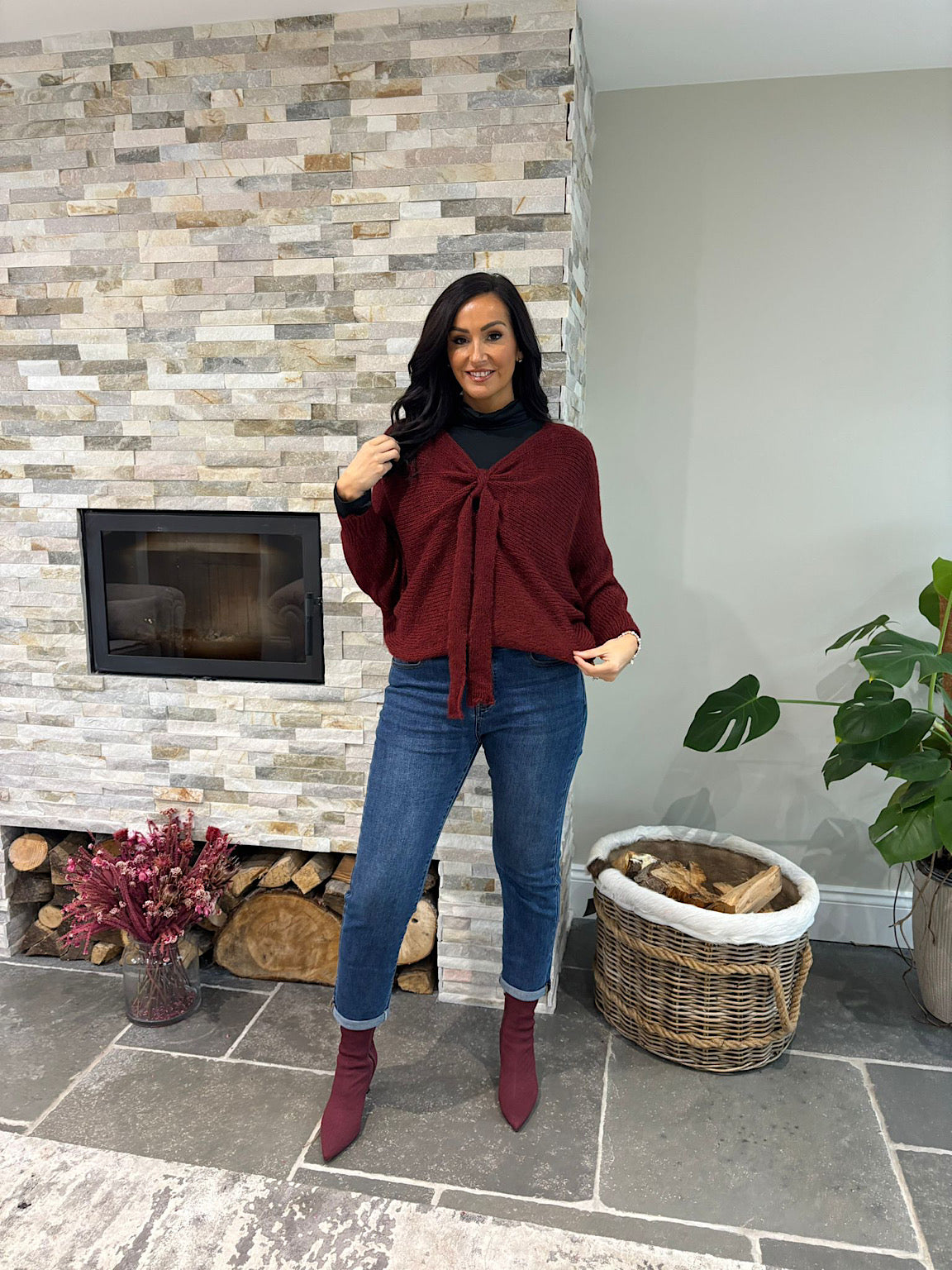 Wrap yourself in comfort with this Knitted Tie Front Jumper Libby. Crafted from soft, cosy fabric that feels wonderful against your skin, this piece features a charming tie front design that lets you create your own ruched effect for a personalised fit. The relaxed batwing sleeves add an effortless, flattering silhouette that works beautifully with any outfit. Perfect for layering or wearing solo, this jumper is your go-to for those moments when you want to feel both stylish and embraced in warmth.