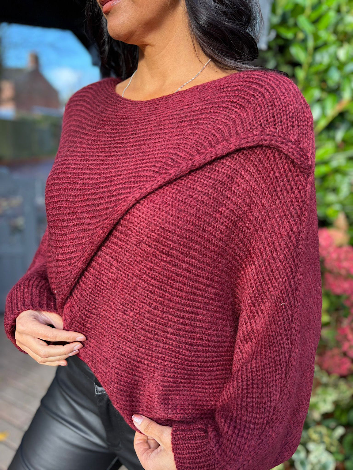 This knitted wrap jumper offers a refined style with its soft, comfortable fabric, making it an ideal choice for layering. Its elegant design enhances any outfit while providing warmth and versatility throughout the seasons.