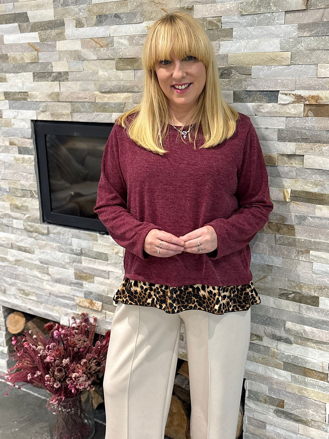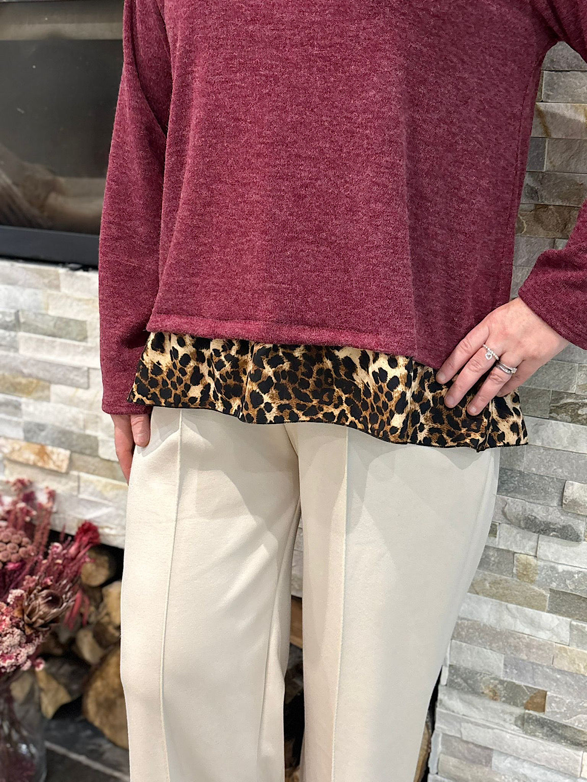 Wine Leopard Hem Knit Bianca