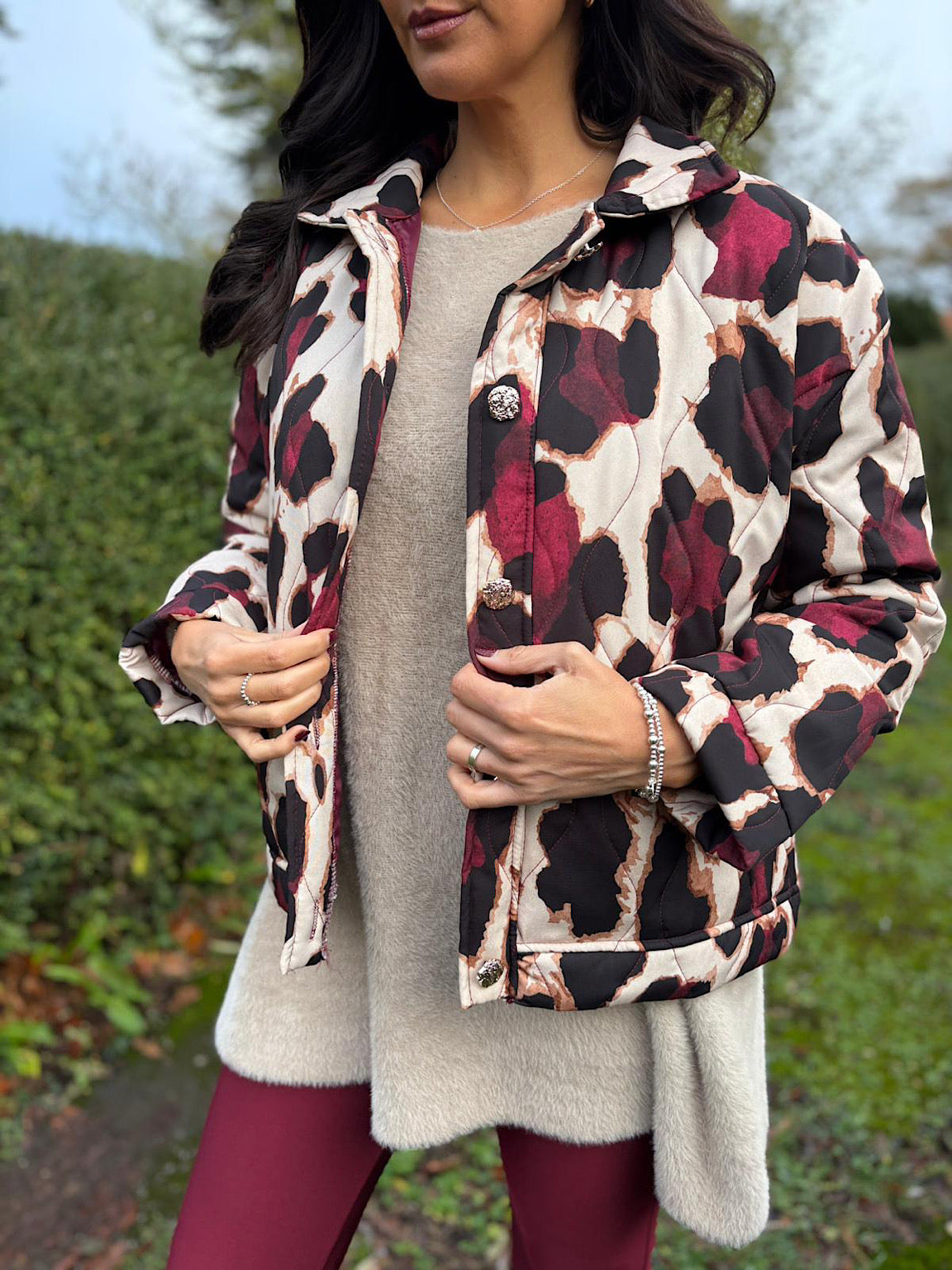 Wine Leopard Quilted Coat Adele