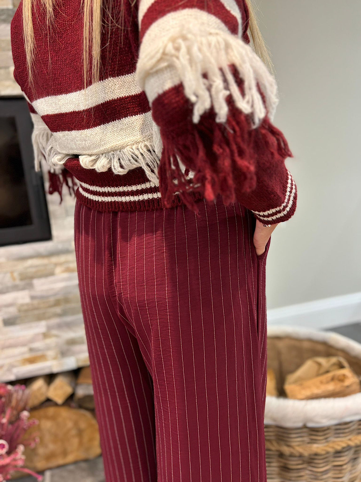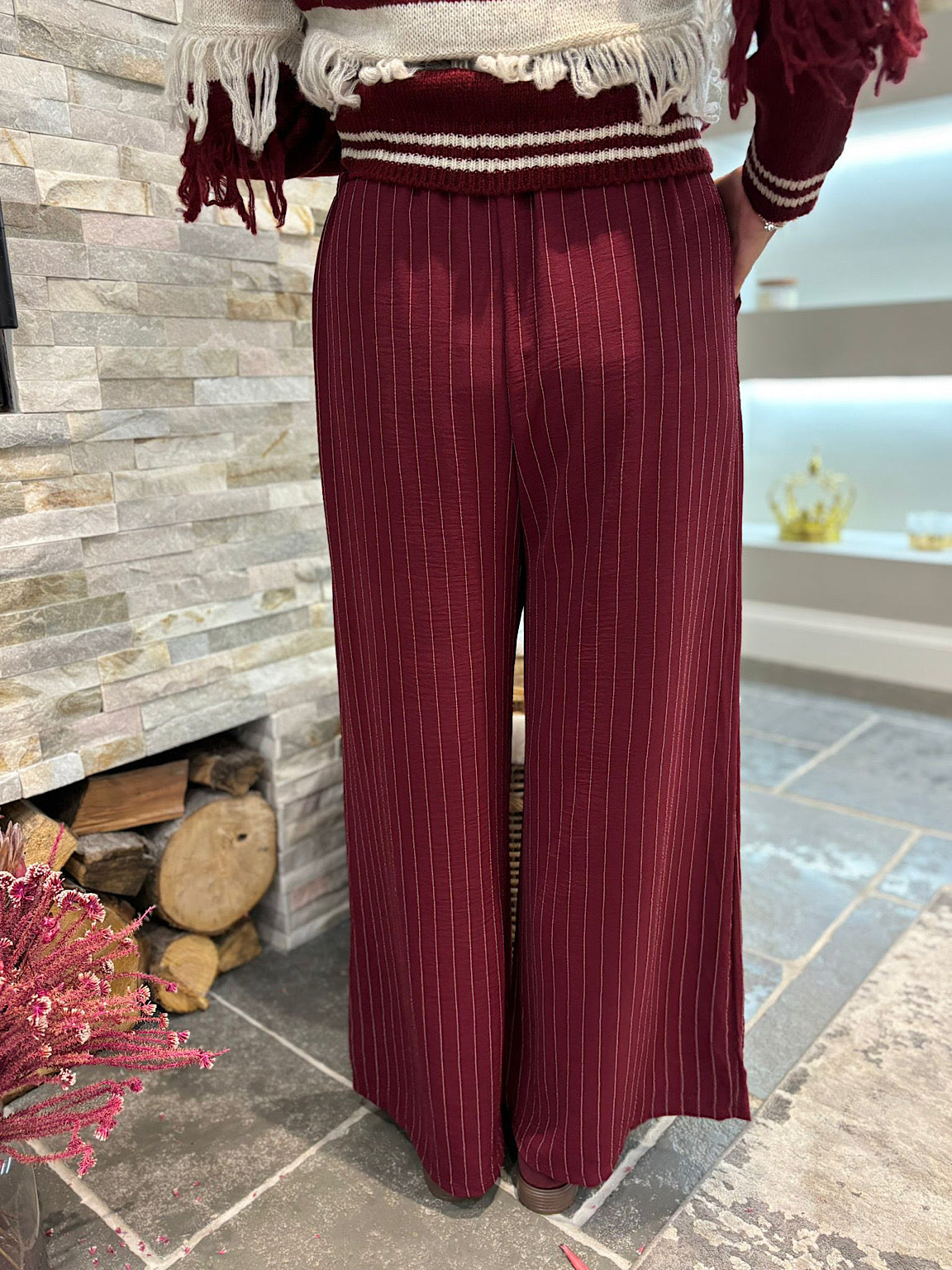 These Pinstripe Pull On Trousers Tanya feature a comfortable elasticated waist and an easy pull-on design, making them effortless to wear. Their lightweight fabric ensures all-day comfort, while the classic pinstripe pattern adds a touch of sophistication. Pairs perfectly with our Tanya Pinstripe Button Top, to create a stylish and coordinated outfit for any occasion.