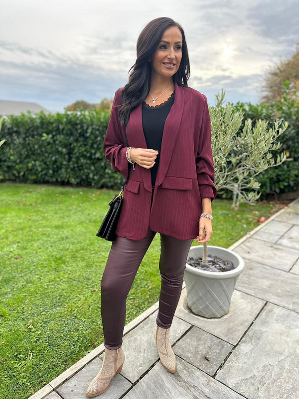 Wine Pinstripe Take You Anywhere Jacket