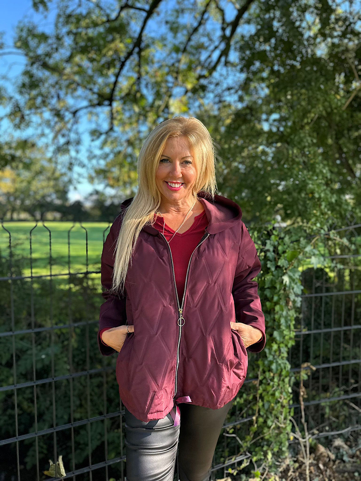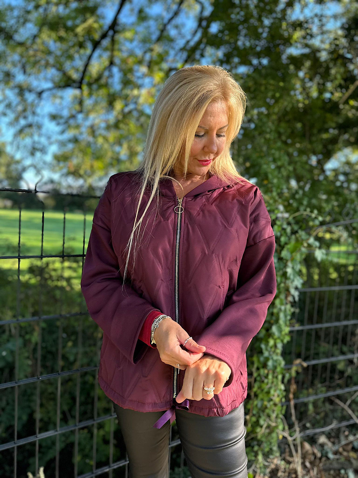 Wine Quilted Jacket Lucia
