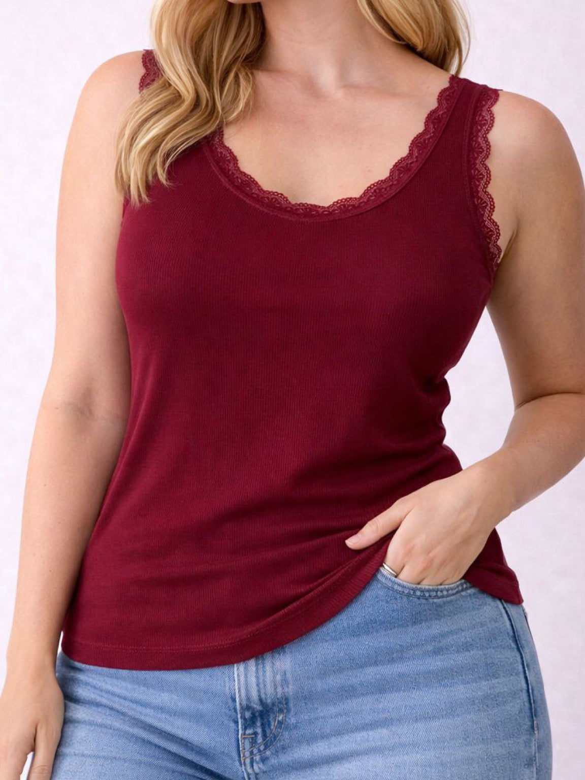 Wine Ribbed Lace Vest Trina