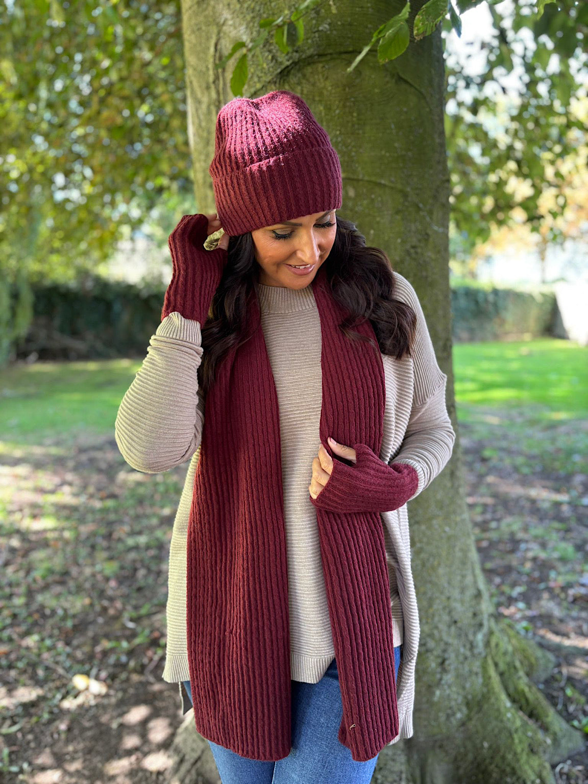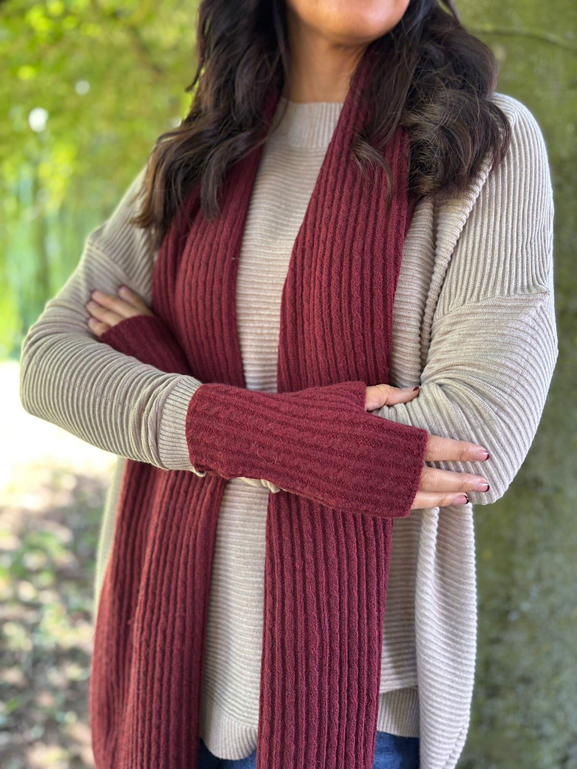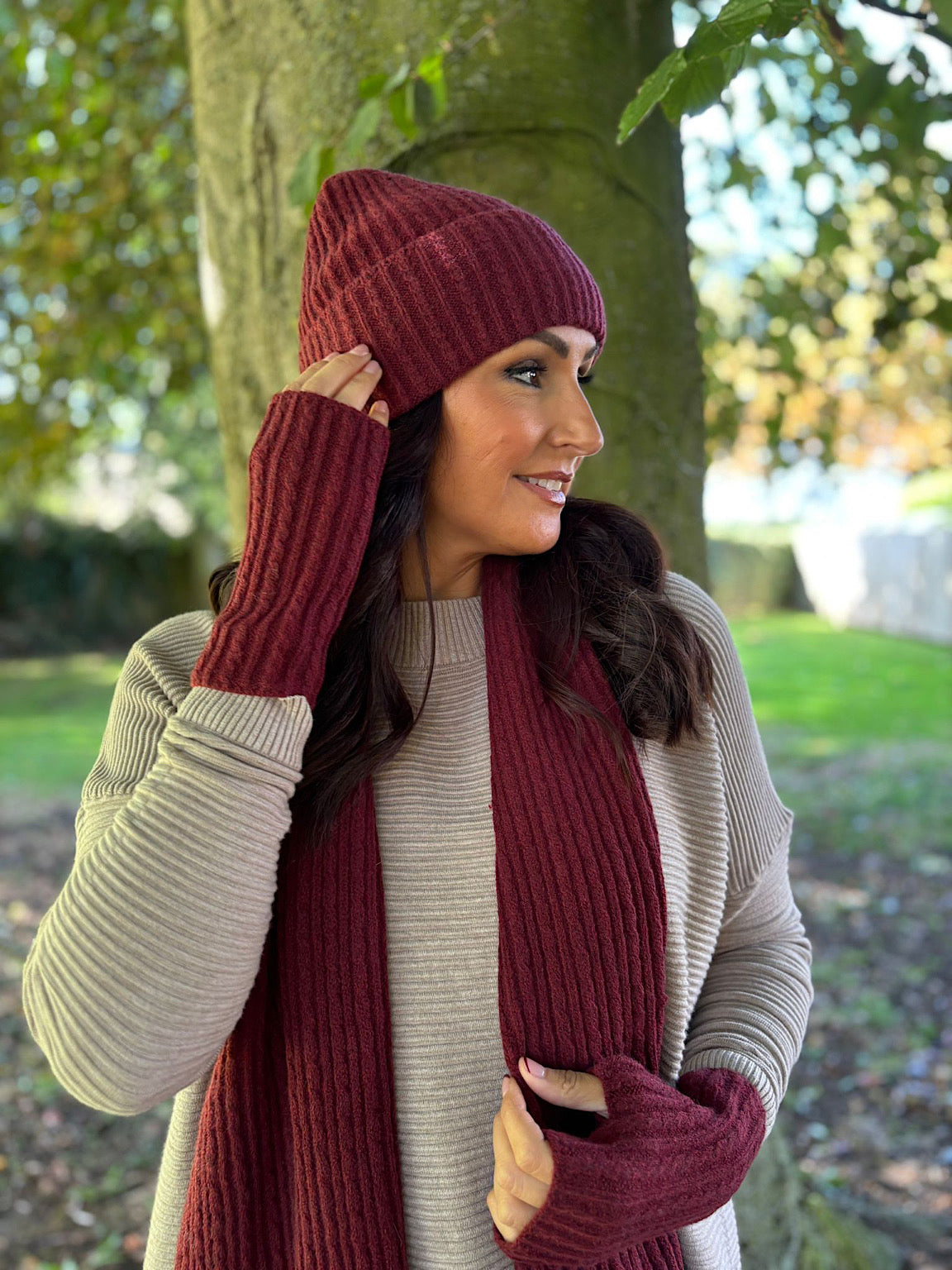 Wine Ribbed Three Piece Scarf Set