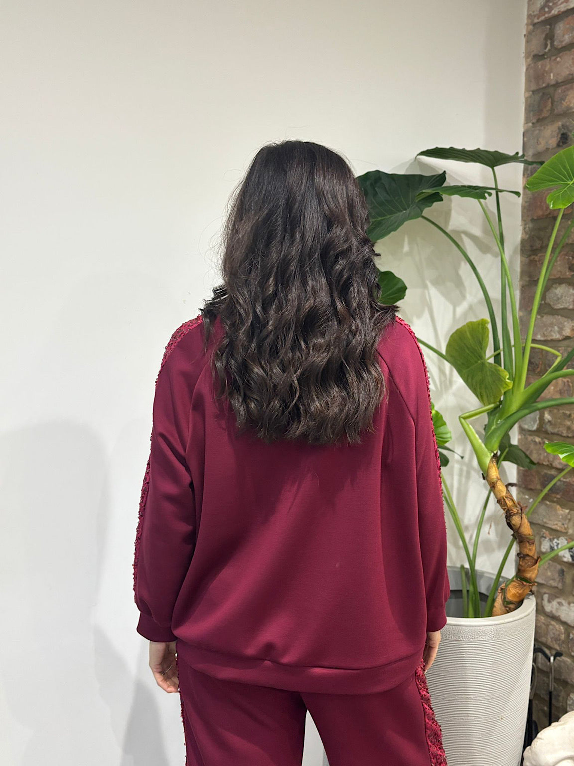 Wine Sequin Velour Trim Jacket Trixie