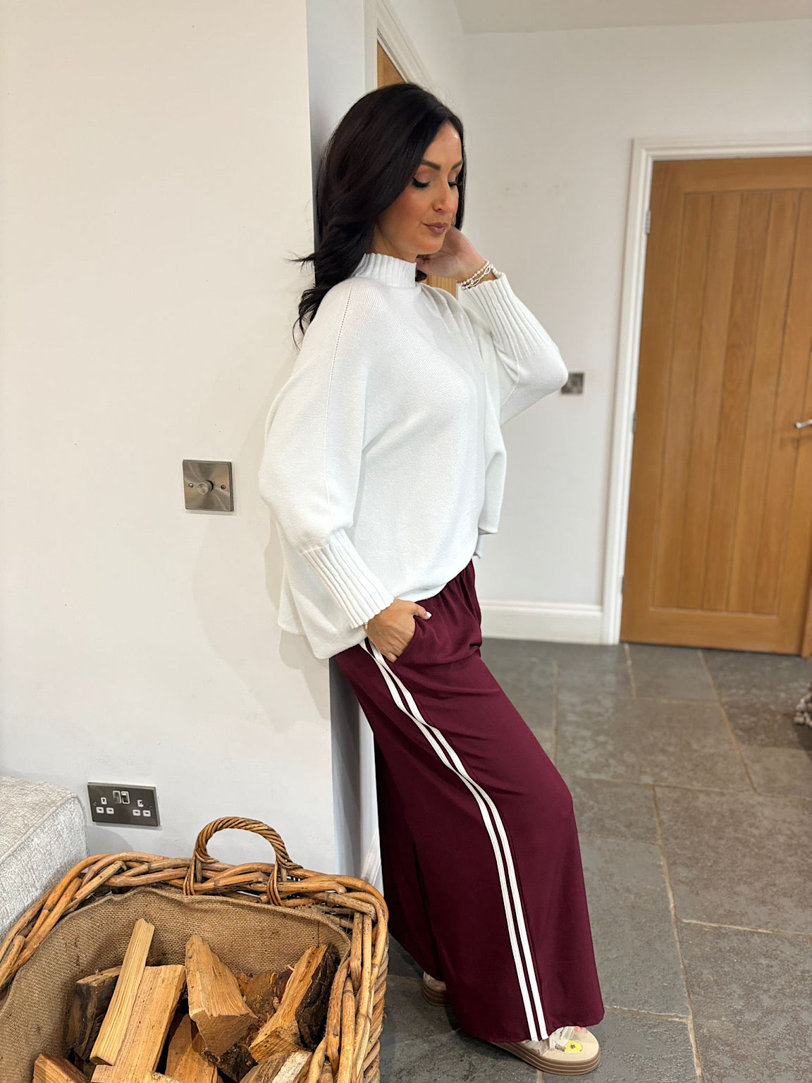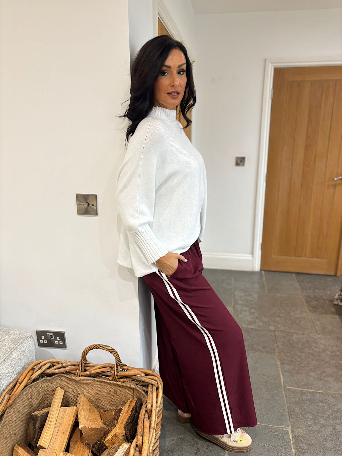 Wine Side Stripe Pull on Trousers Jenna