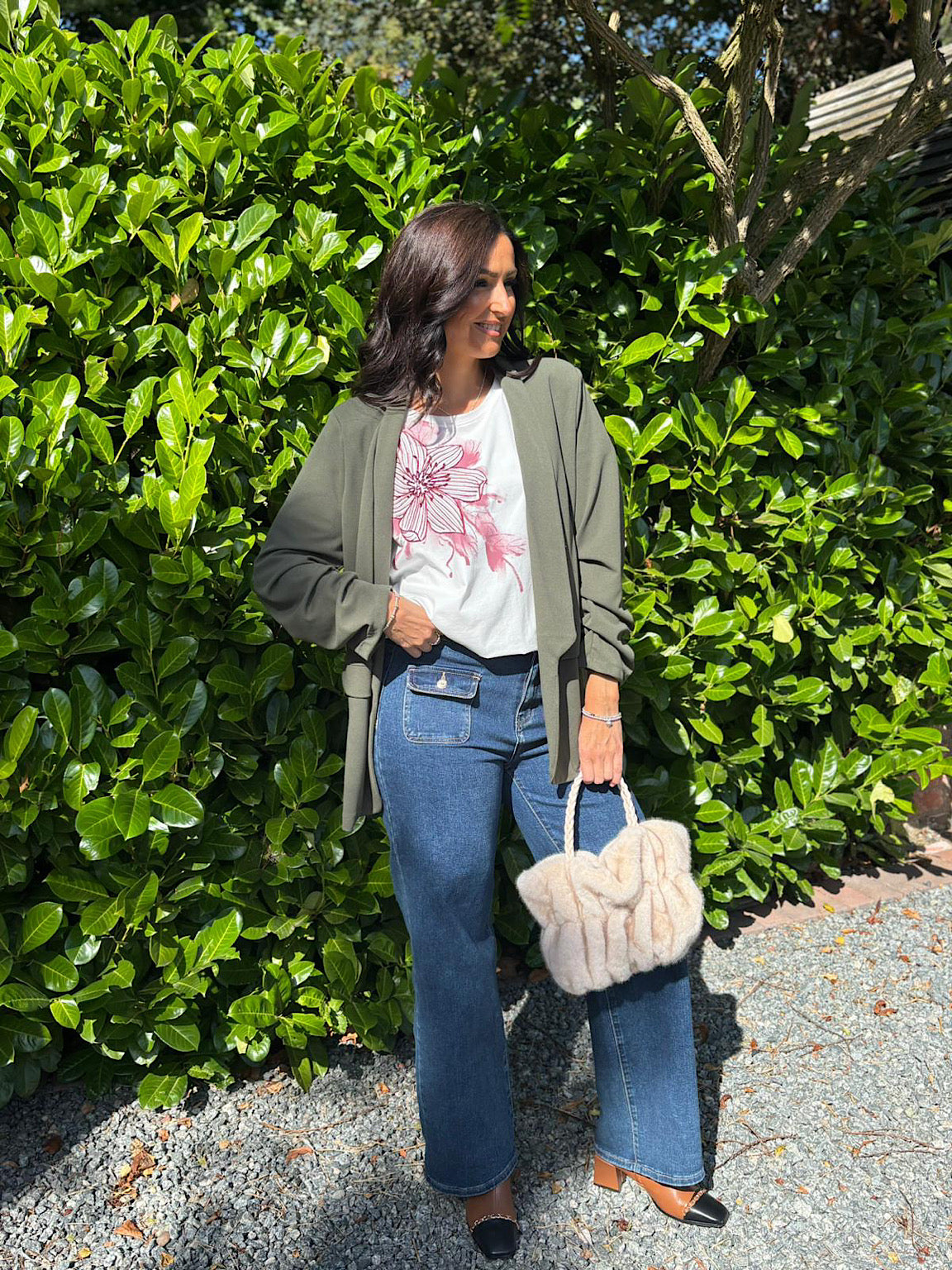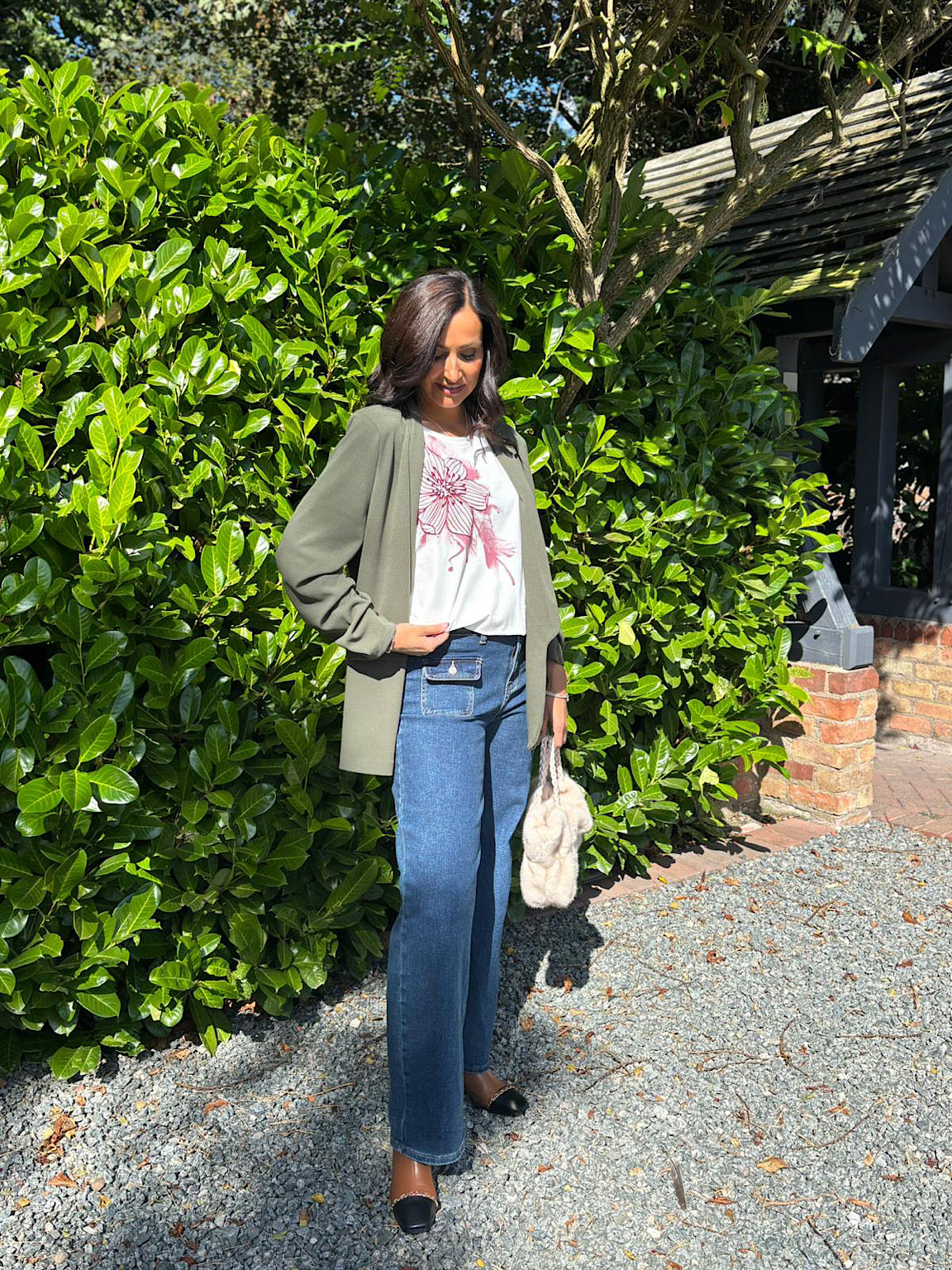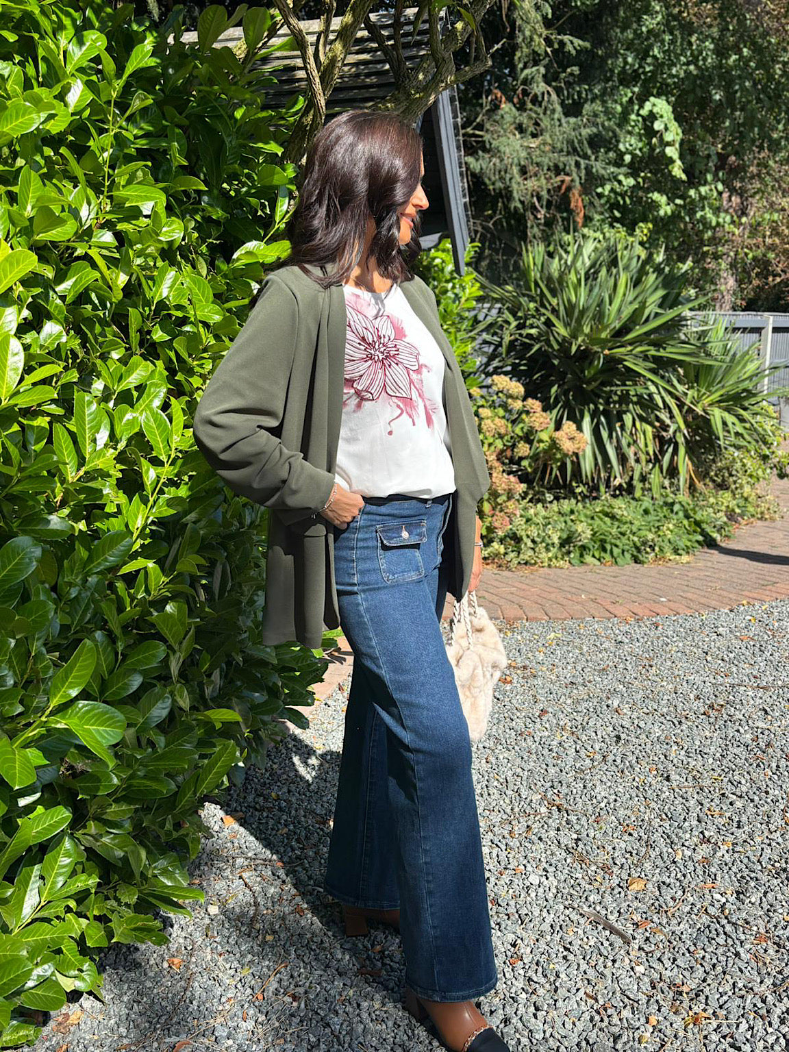 Styled with.....> Denim Button Pocket Wide Leg Jeans