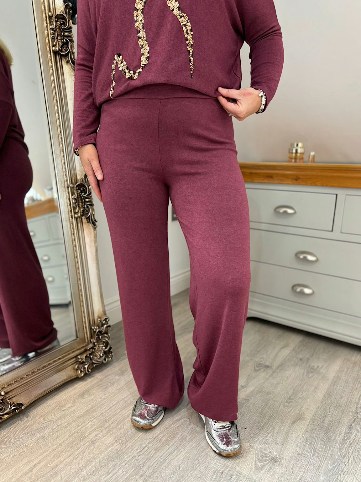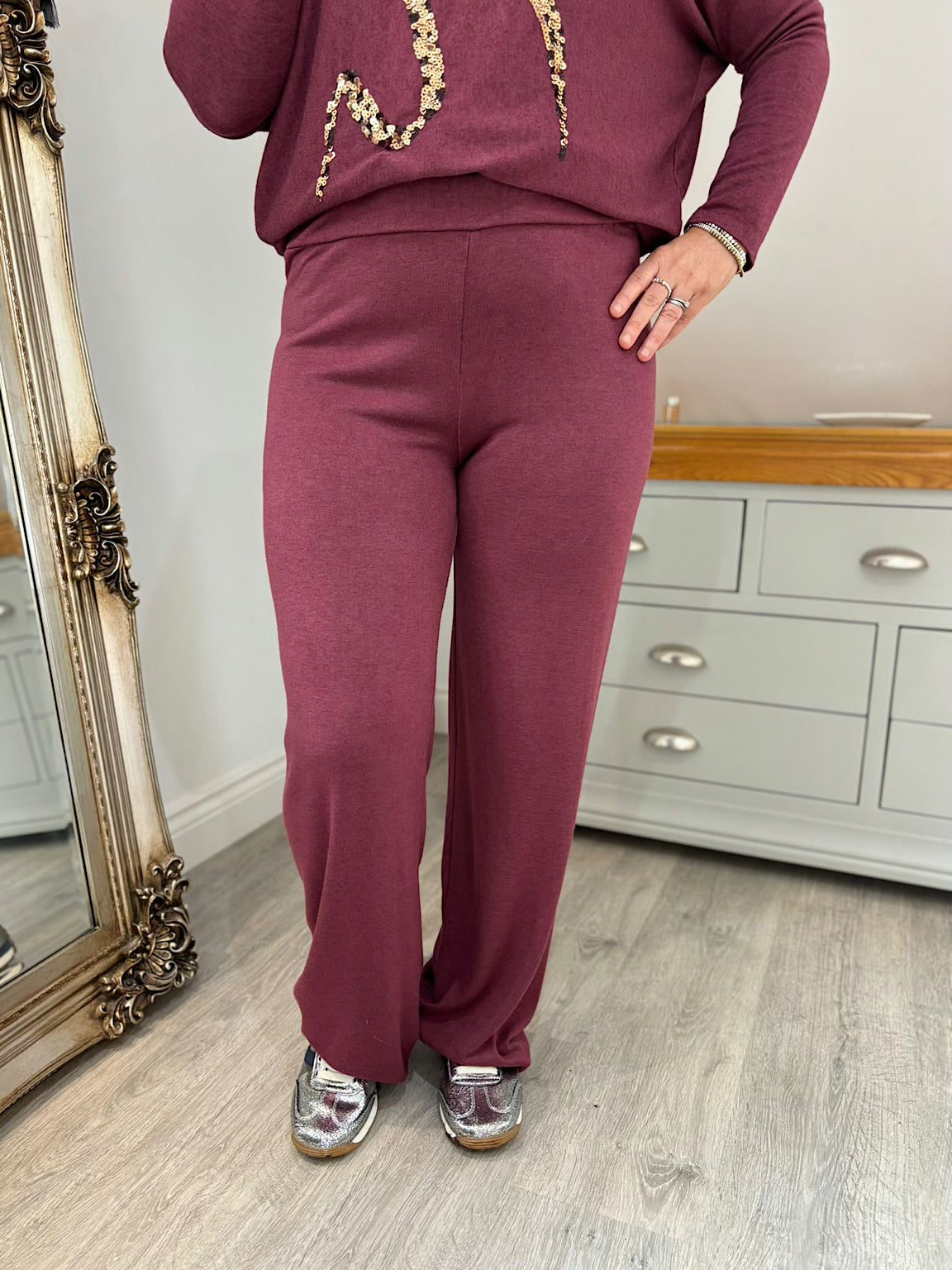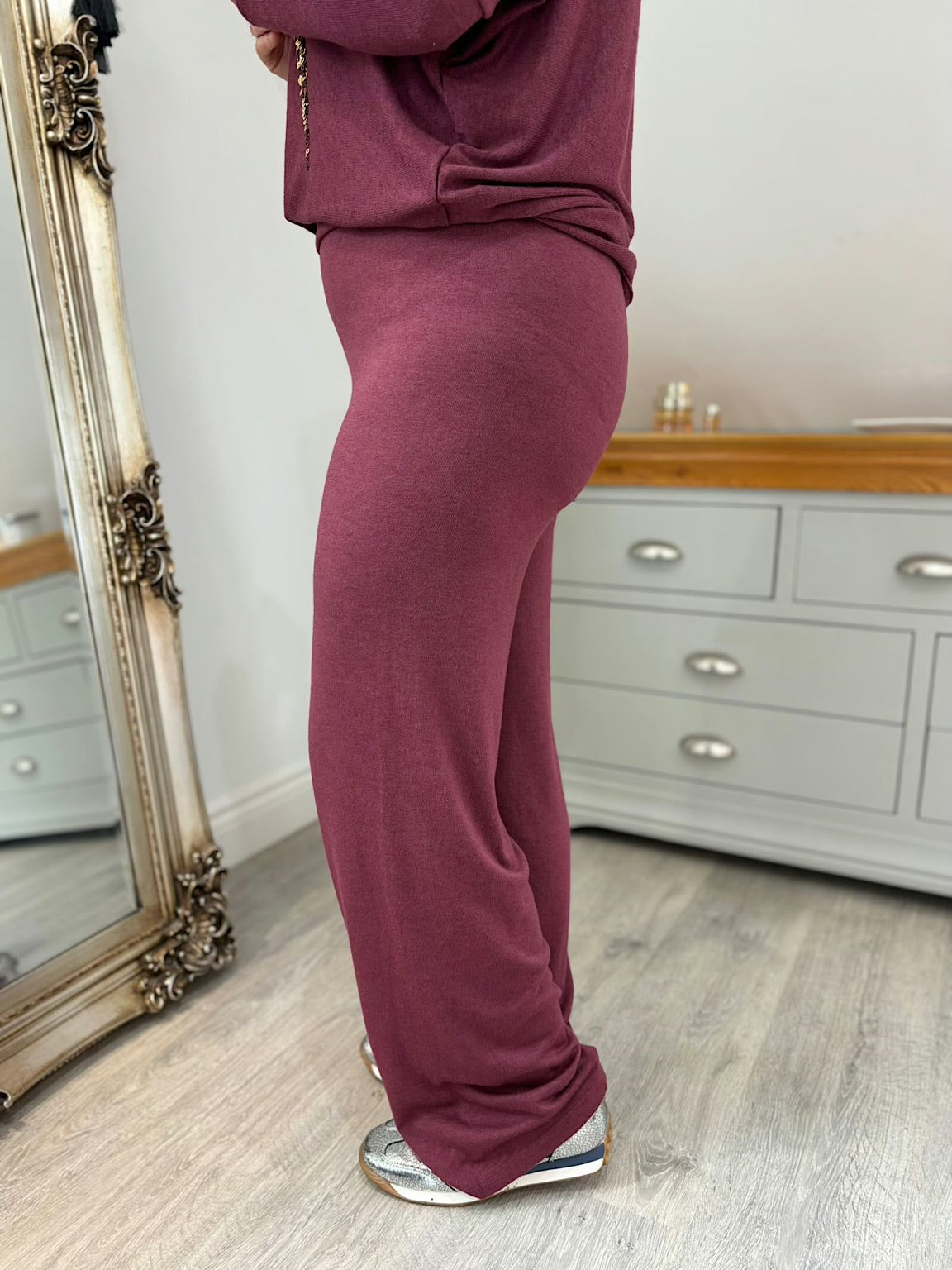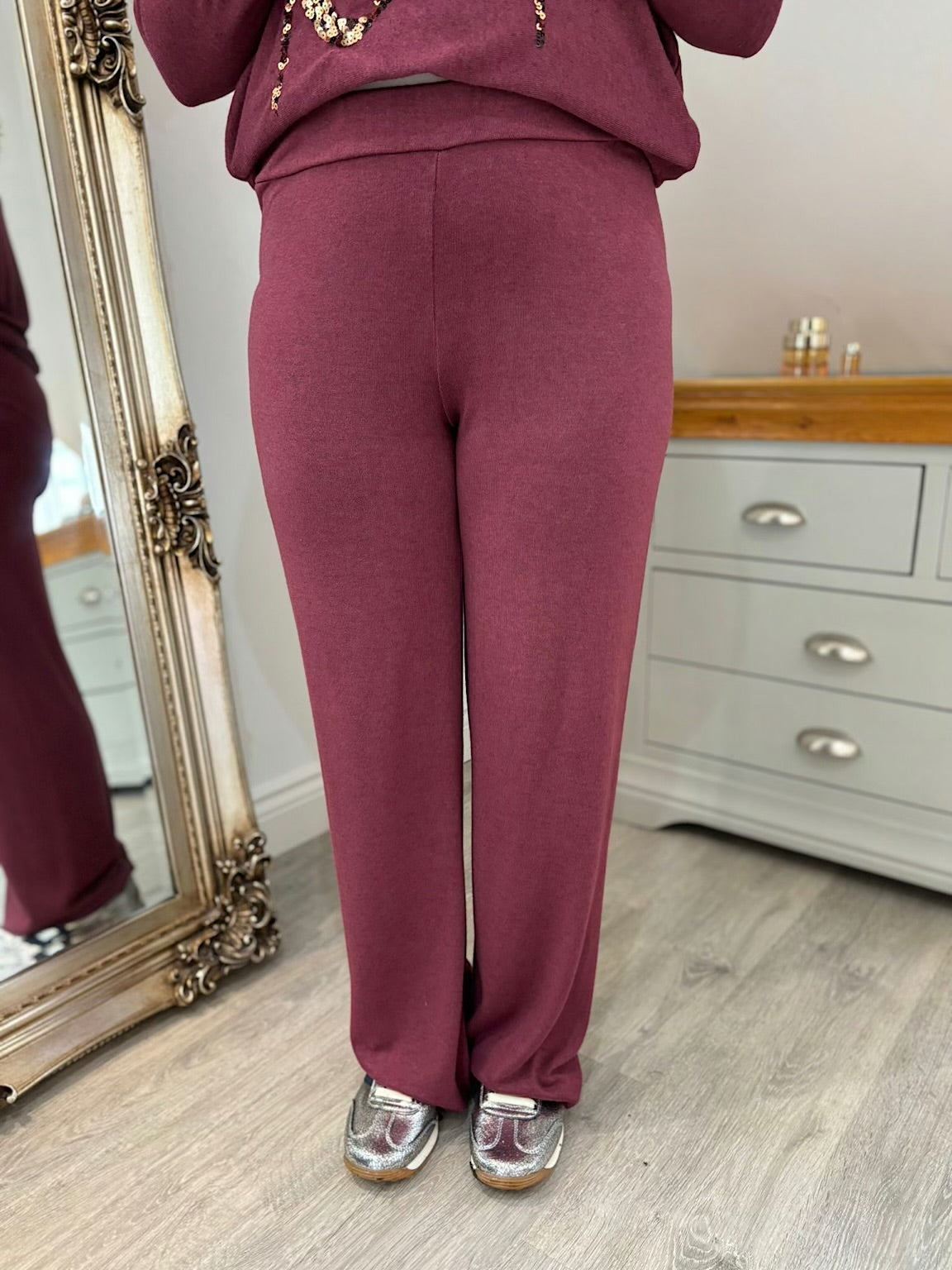 Wine Soft Knit Trousers Charlotte