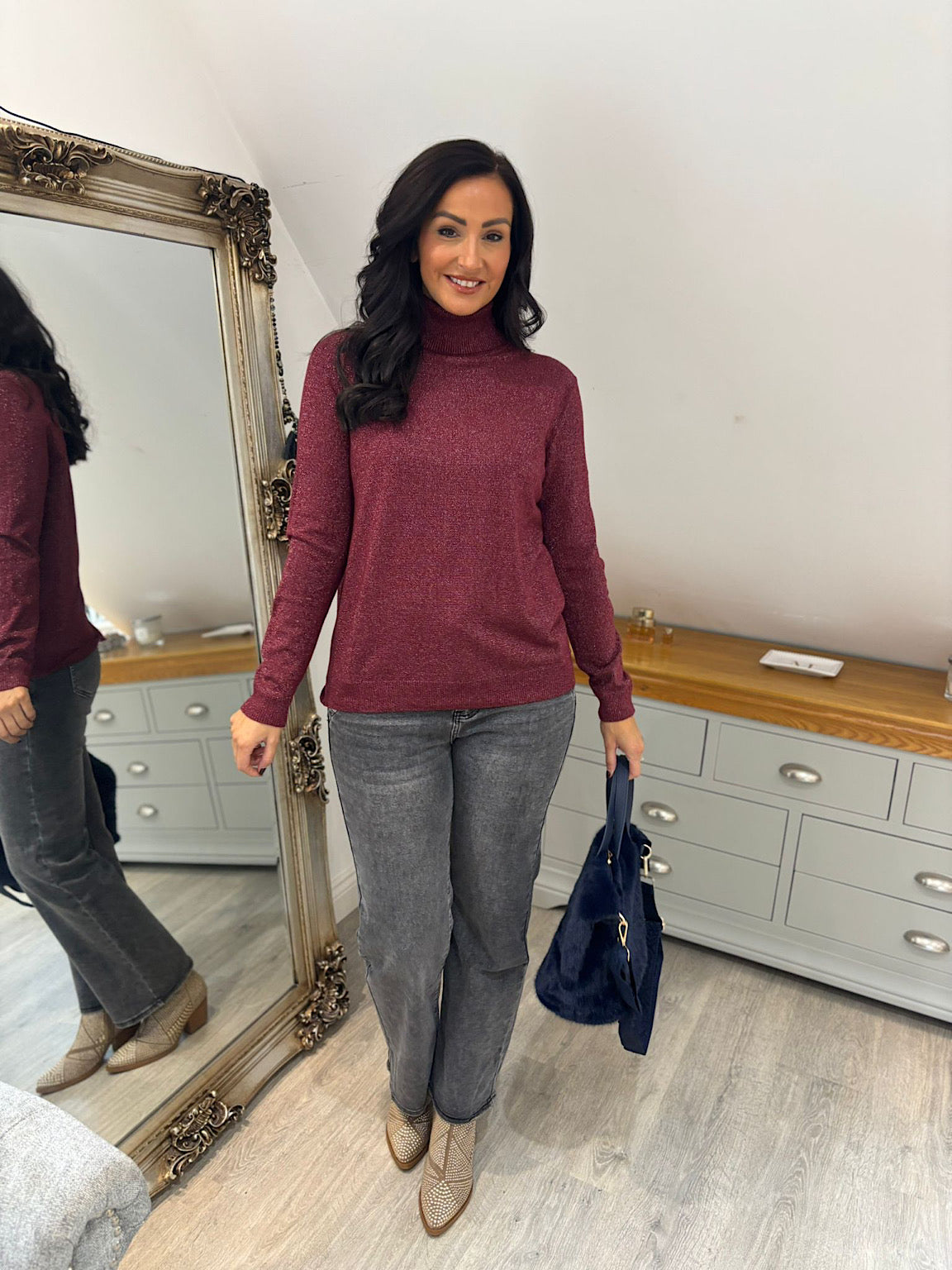 The Sparkle Roll Neck Susan combines softness and stretch for a comfortable, flattering fit. Silver lurex threads create a subtle, classy sparkle throughout the fabric, while the ribbed roll neck adds warmth and a touch of elegance. Perfect for stylish layering with gentle flexibility that moves with you.