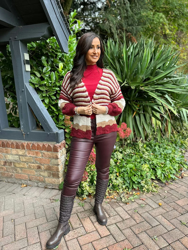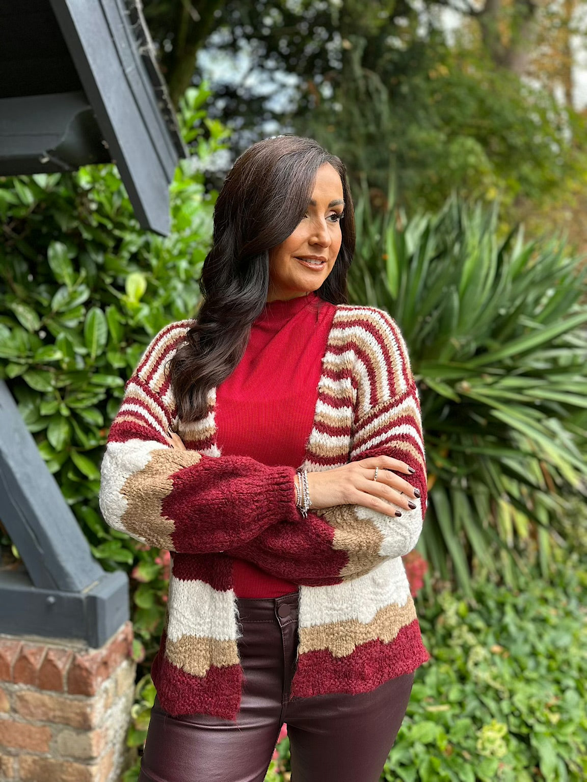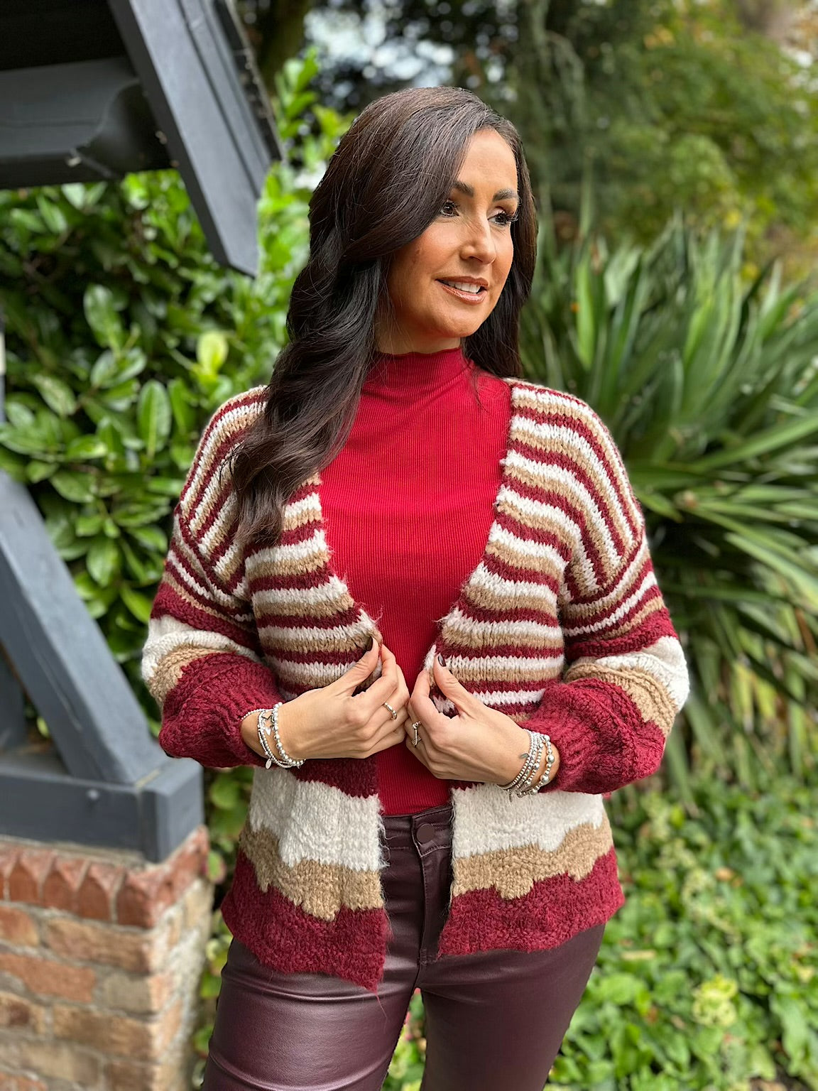 Crafted from a luxurious soft knit, the Striped Premium Cardi Leah combines comfort with refined style. Its elegant striped pattern and flattering fit make it an ideal layering piece, enhancing your wardrobe with a subtle touch of sophistication.