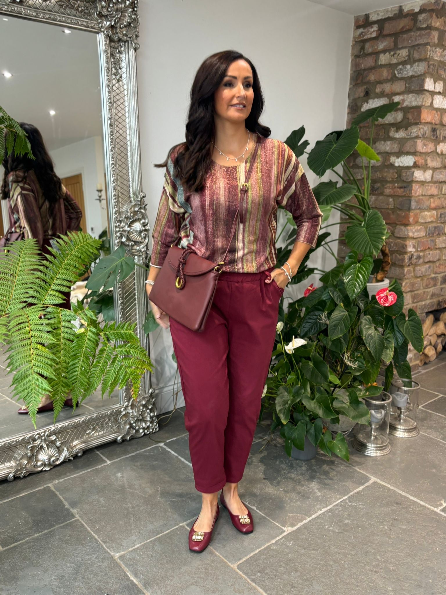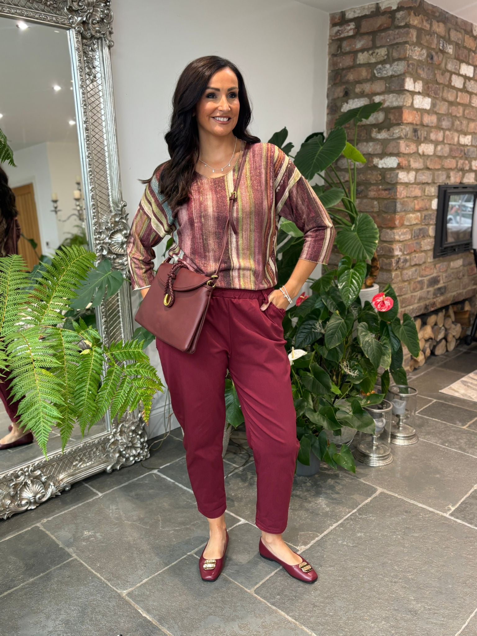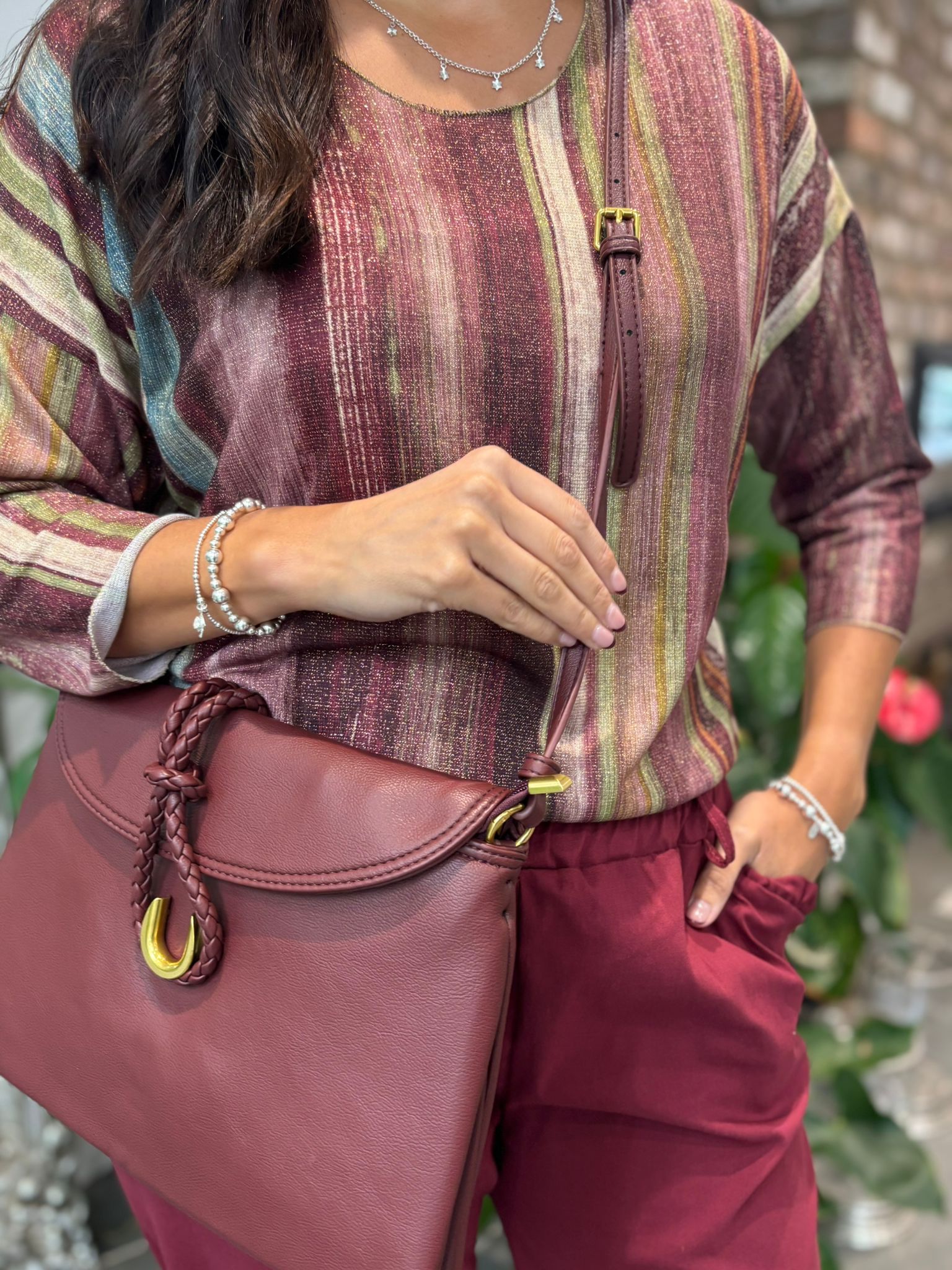 Wine Striped Shimmer Top Lottie