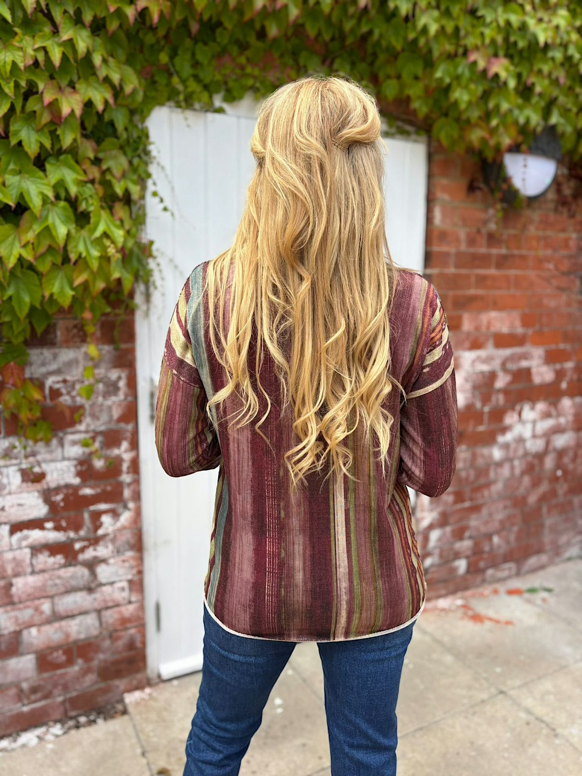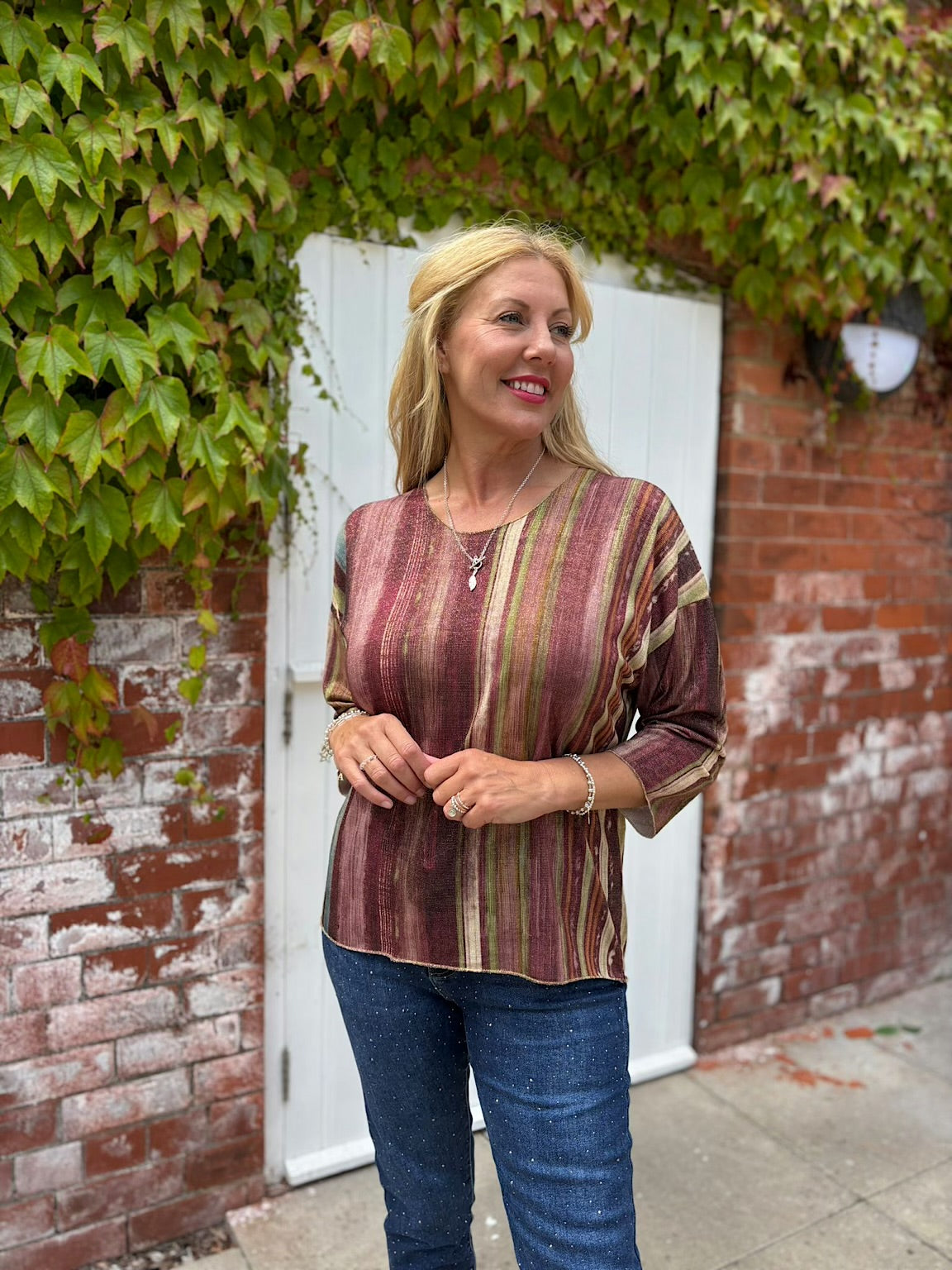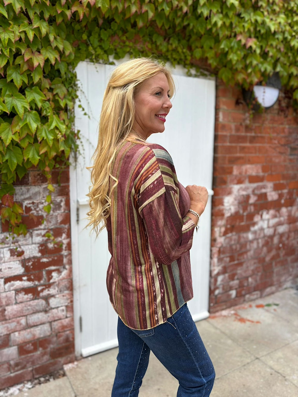 Wine Striped Shimmer Top Lottie