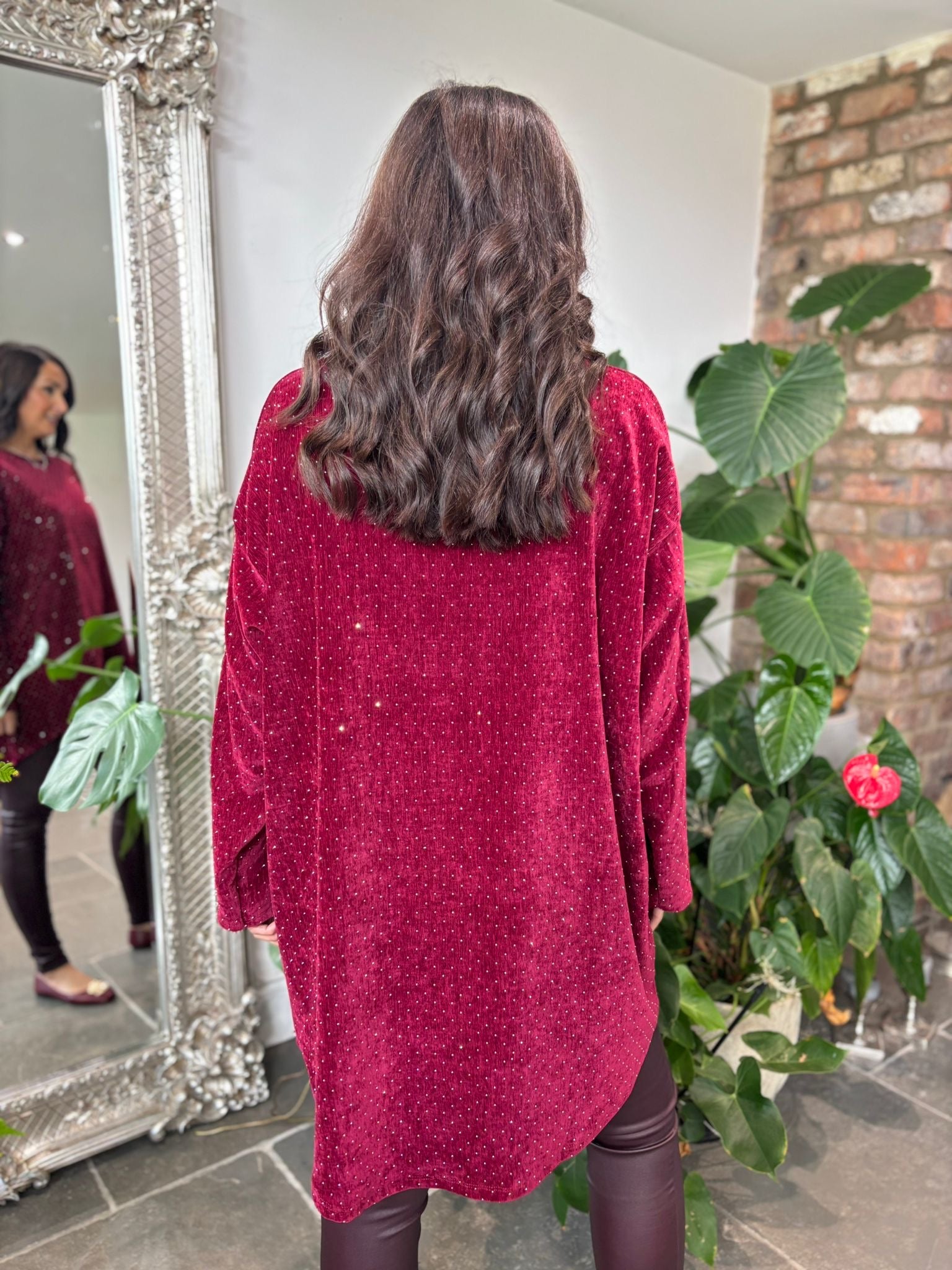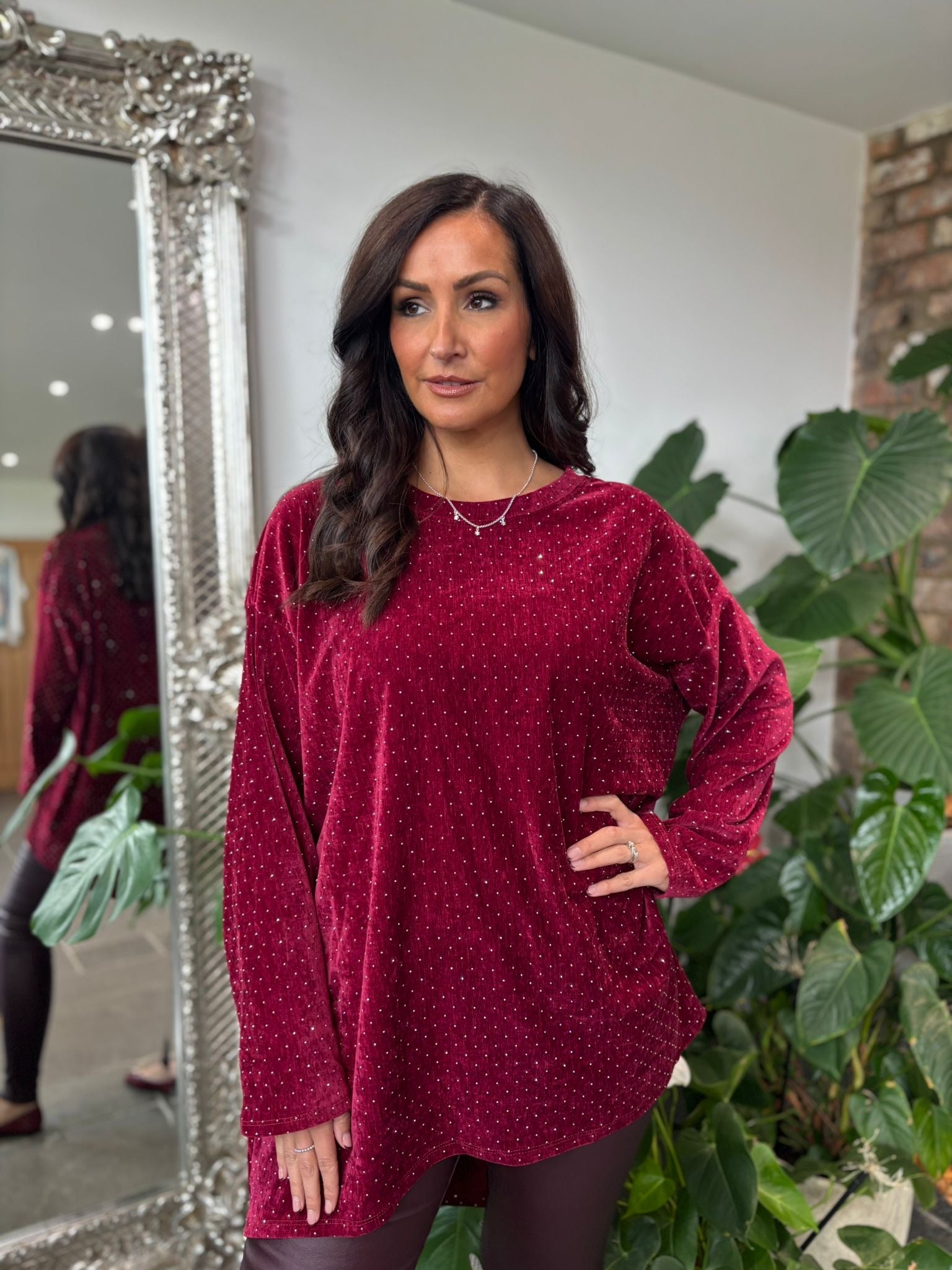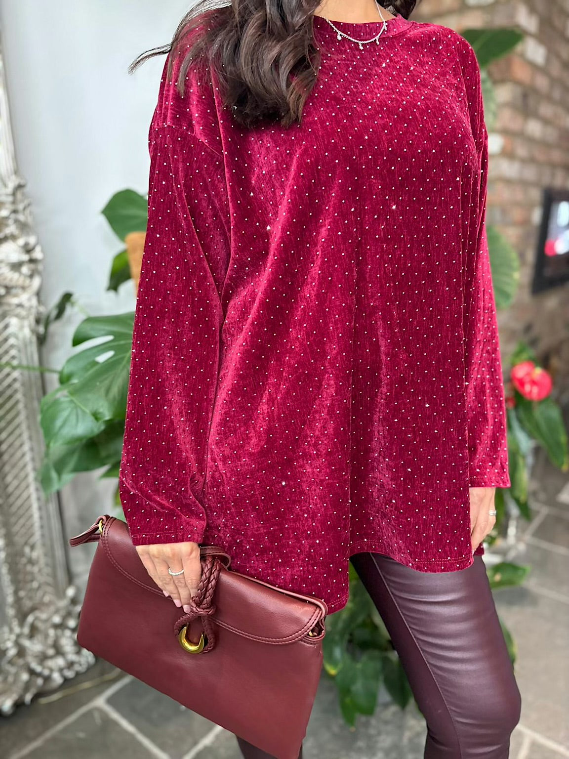 Experience elegance with the Velour Diamante Tunic Celeste, crafted from soft fabric for luxurious comfort. Its subtle diamante sparkle adds refined shimmer, while the longer back hem creates a flattering, graceful silhouette. Ideal for elevating your wardrobe with understated sophistication.