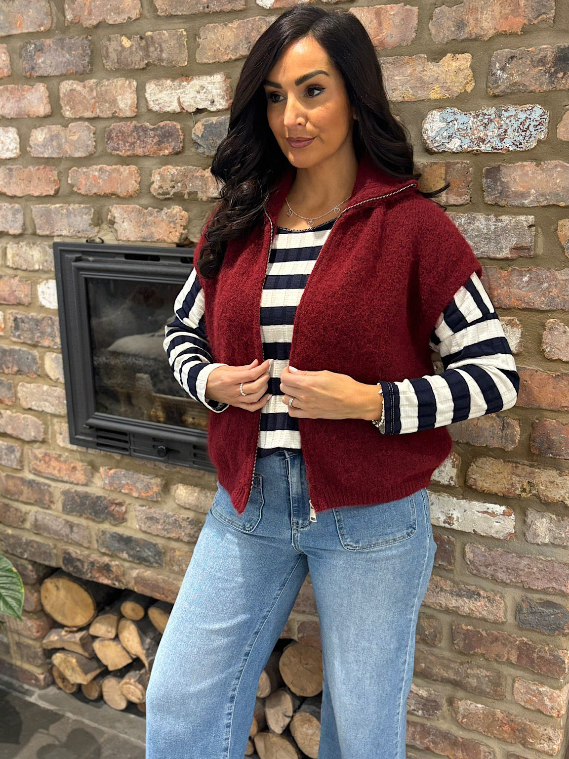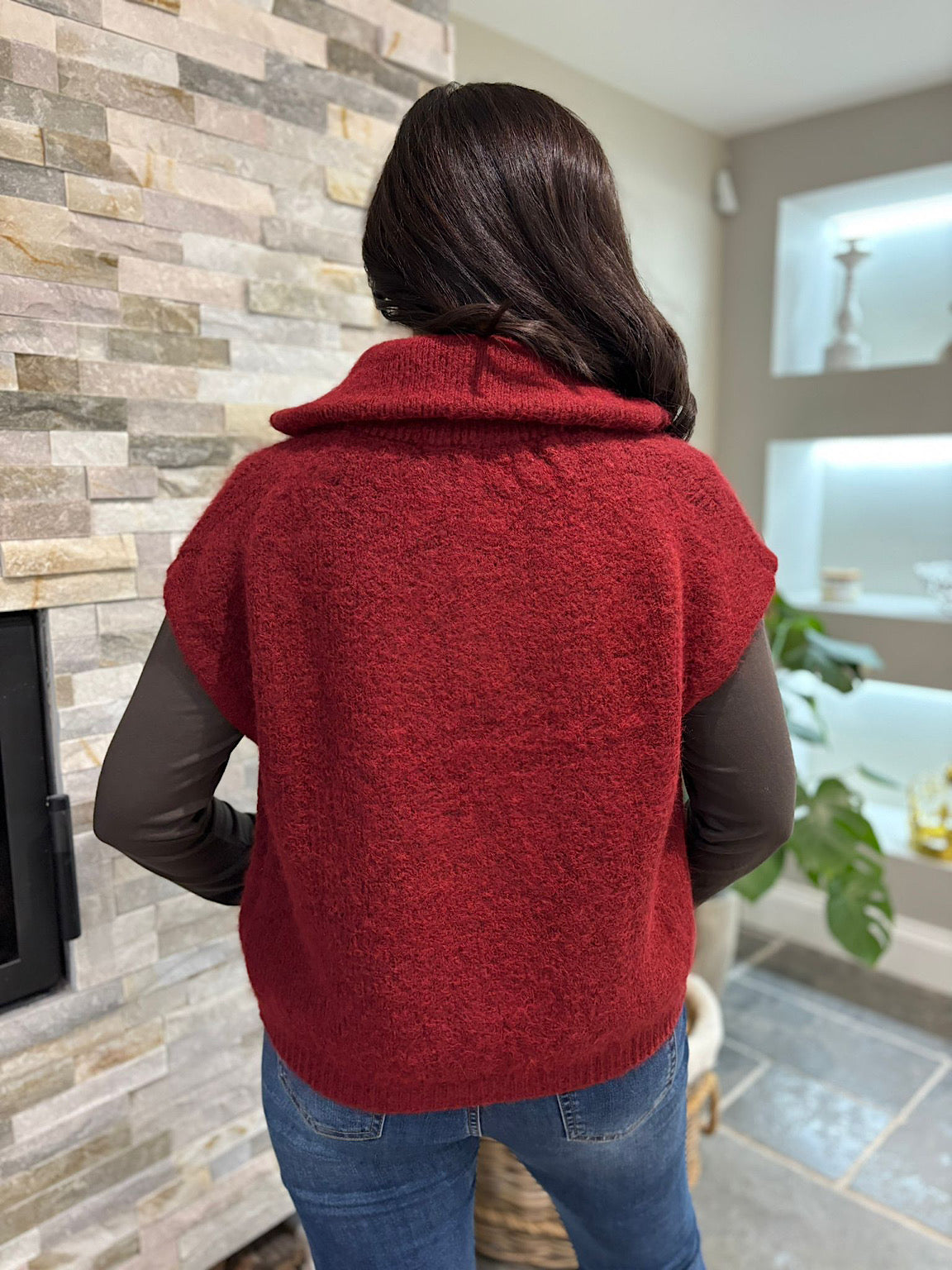 Wine Zip Up Knitted Waistcoat Donna