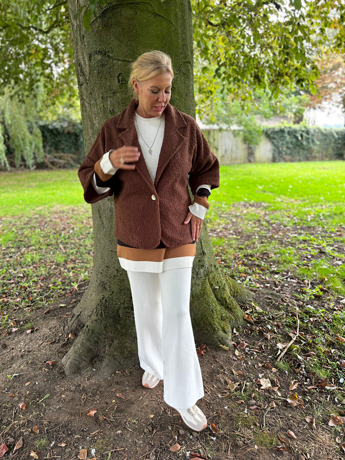 Styled with.....> Winter White Striped Trim Knit Ophelia / Stone Ebony Trainer