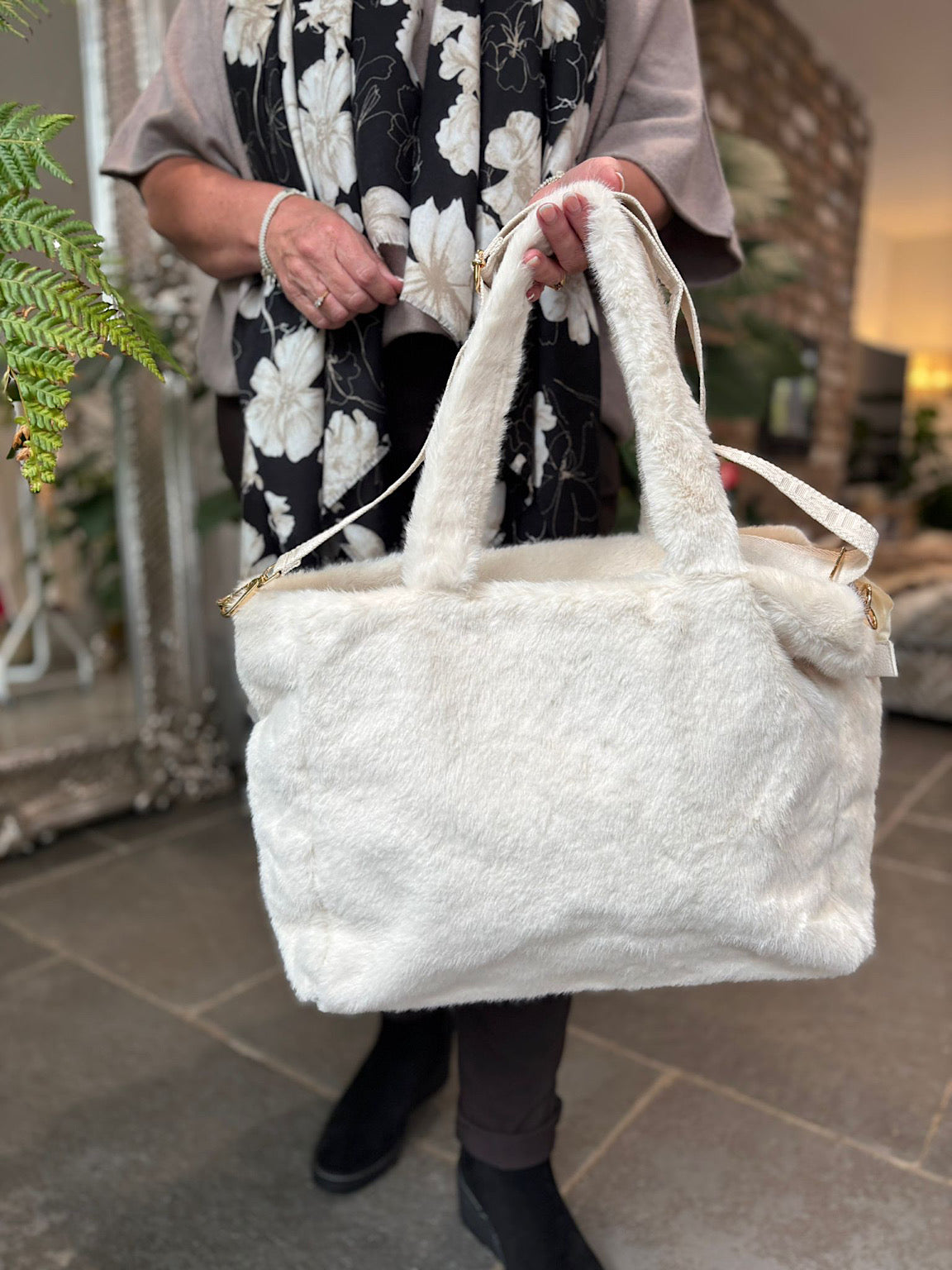 Experience the perfect blend of style and comfort with the Fluffy Tote Bag. Its soft, fluffy texture offers cosy appeal, while comfortable straps ensure easy carrying all day. The detachable shoulder strap adds versatility for hands-free convenience. Secure your belongings with the reliable zip closure, making this tote both practical and charming for everyday use.