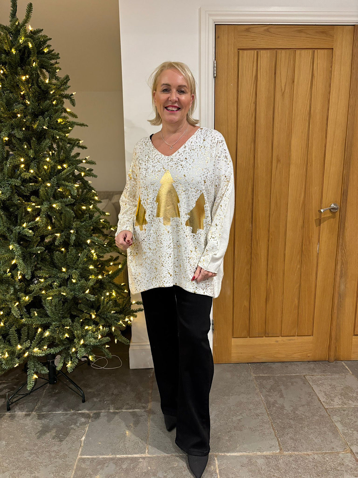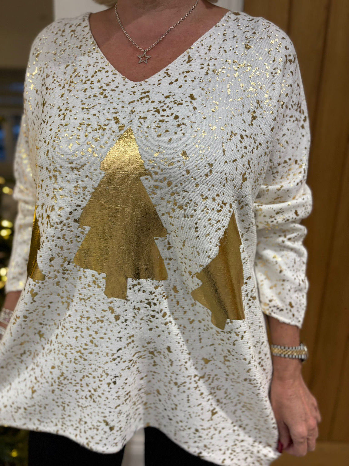 Winter White Gold Xmas Tree Knit Ava
