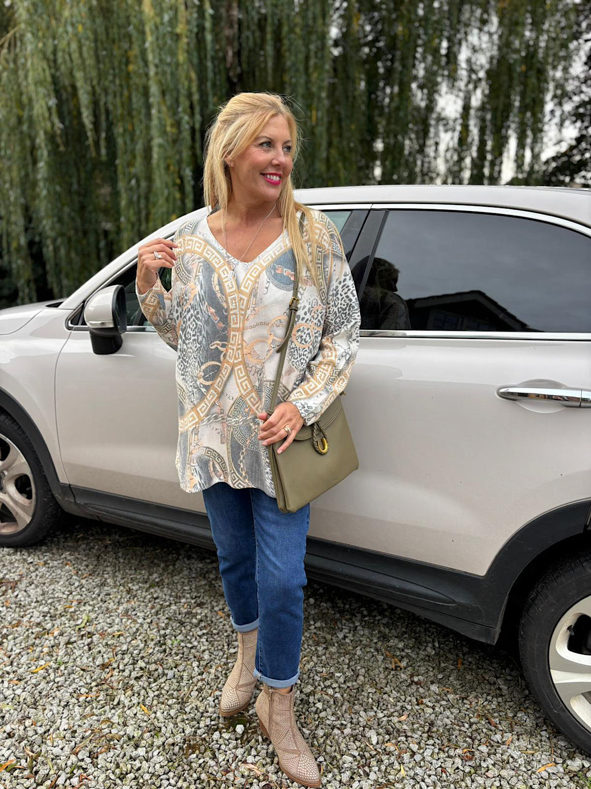 Styled with.....> Khaki Braid Fasten Shoulder Bag / Mocha Stud Embellished Ankle Boots / Denim Fringed Pocket Jeans