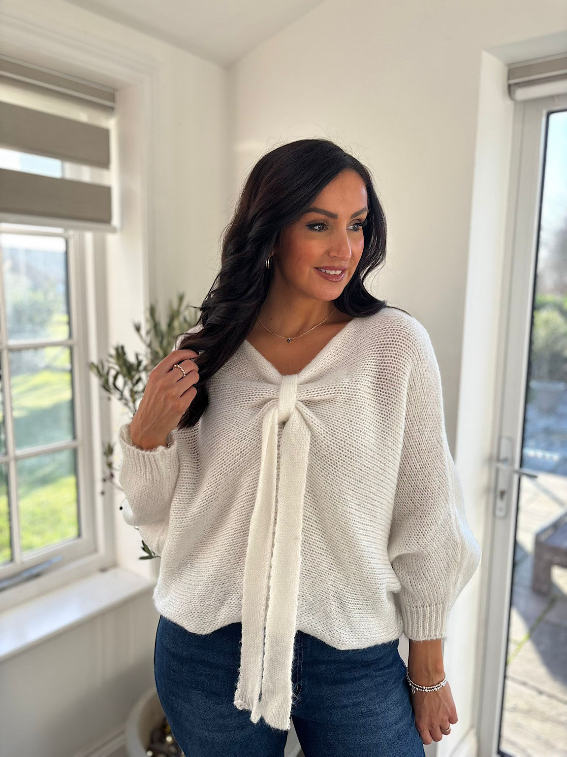 Winter White Knitted Tie Front Jumper Libby