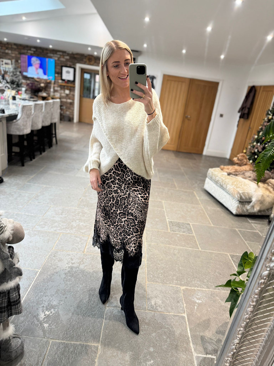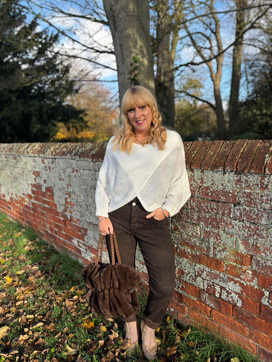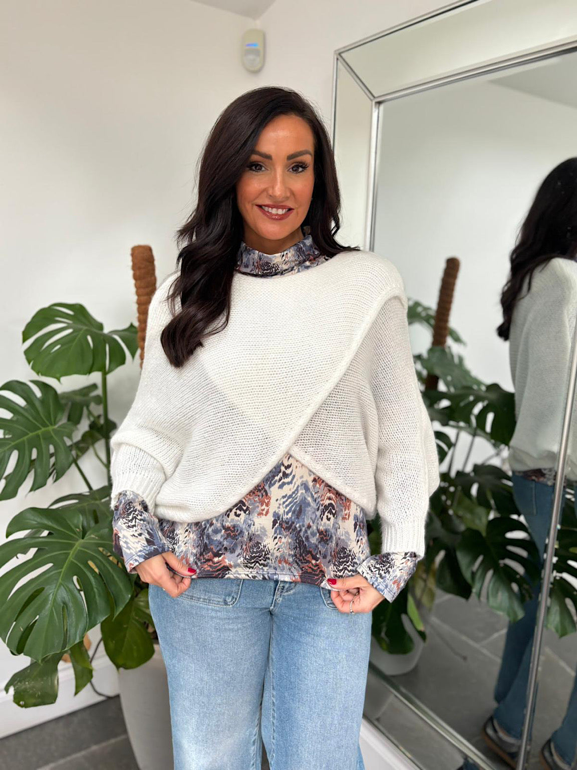 This knitted wrap jumper offers a refined style with its soft, comfortable fabric, making it an ideal choice for layering. Its elegant design enhances any outfit while providing warmth and versatility throughout the seasons.